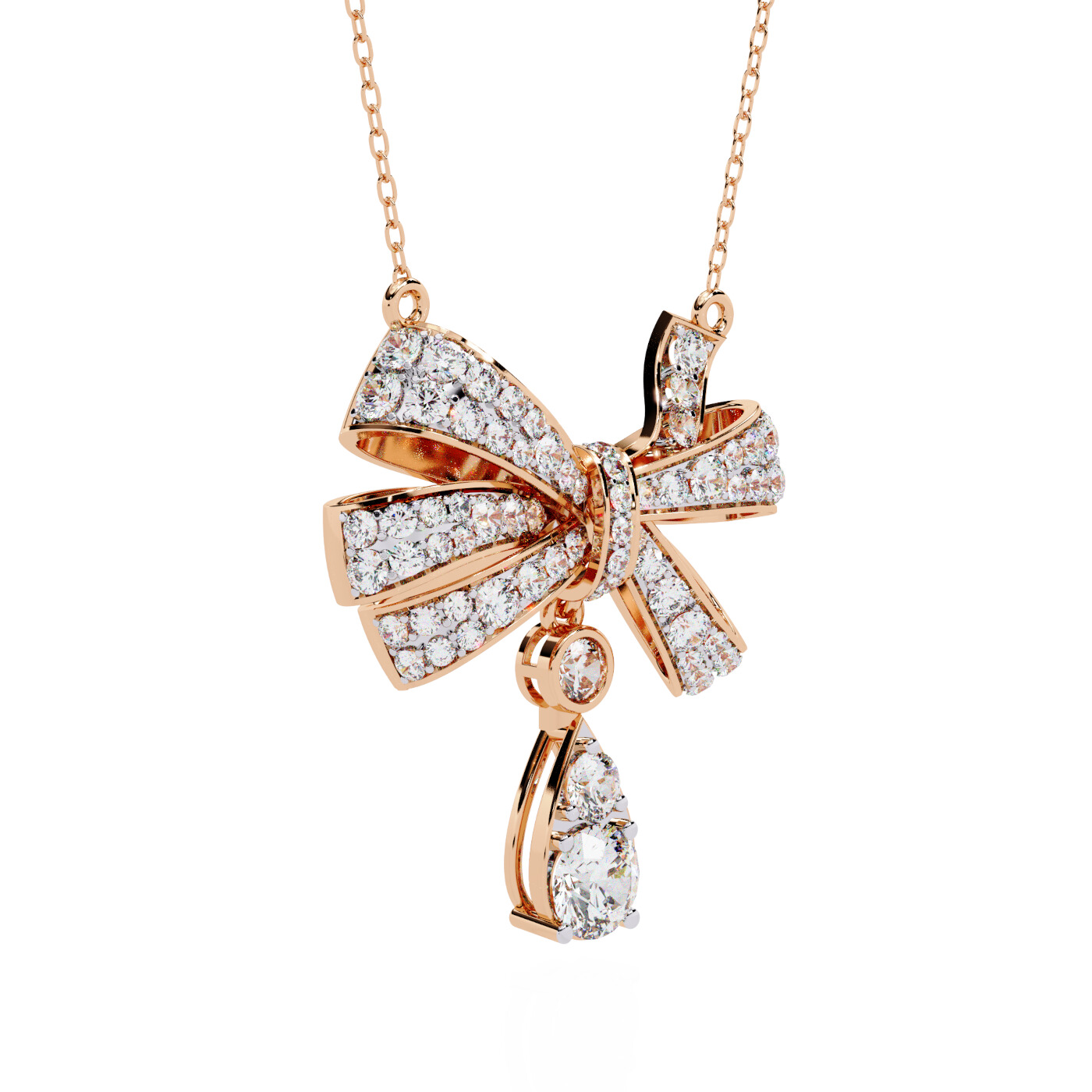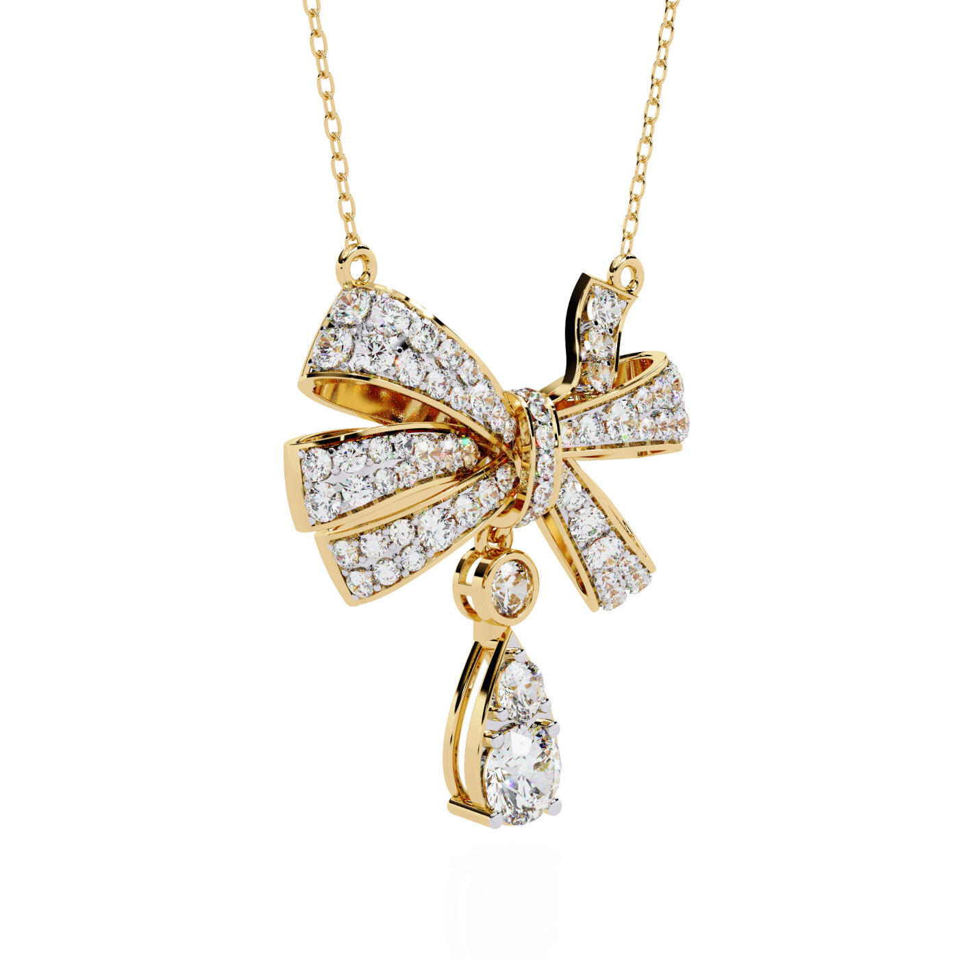 A graceful bow-shaped pendant accented with sparkling lab-grown diamonds, finished with a teardrop dangle for added charm. Perfect for adding a feminine touch to any outfit.