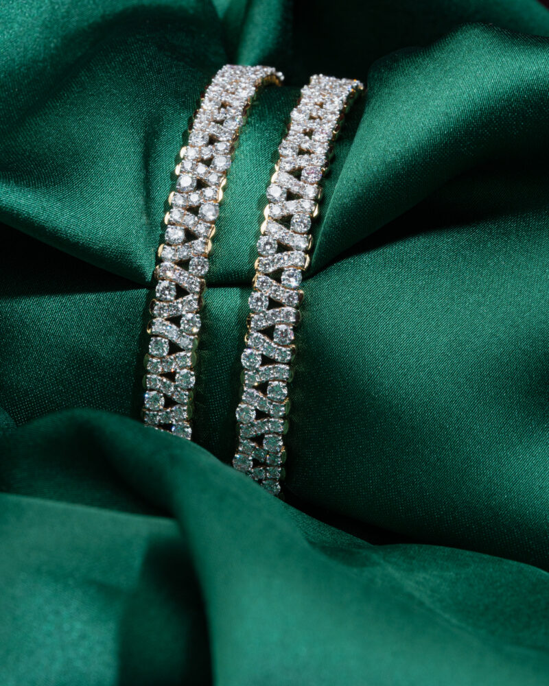 A timeless symbol of elegance, the Nazara Classic Diamond Bangles feature lab-grown diamonds with VS clarity and D-E color, set in radiant yellow gold. The intricate design offers a luxurious sparkle, making