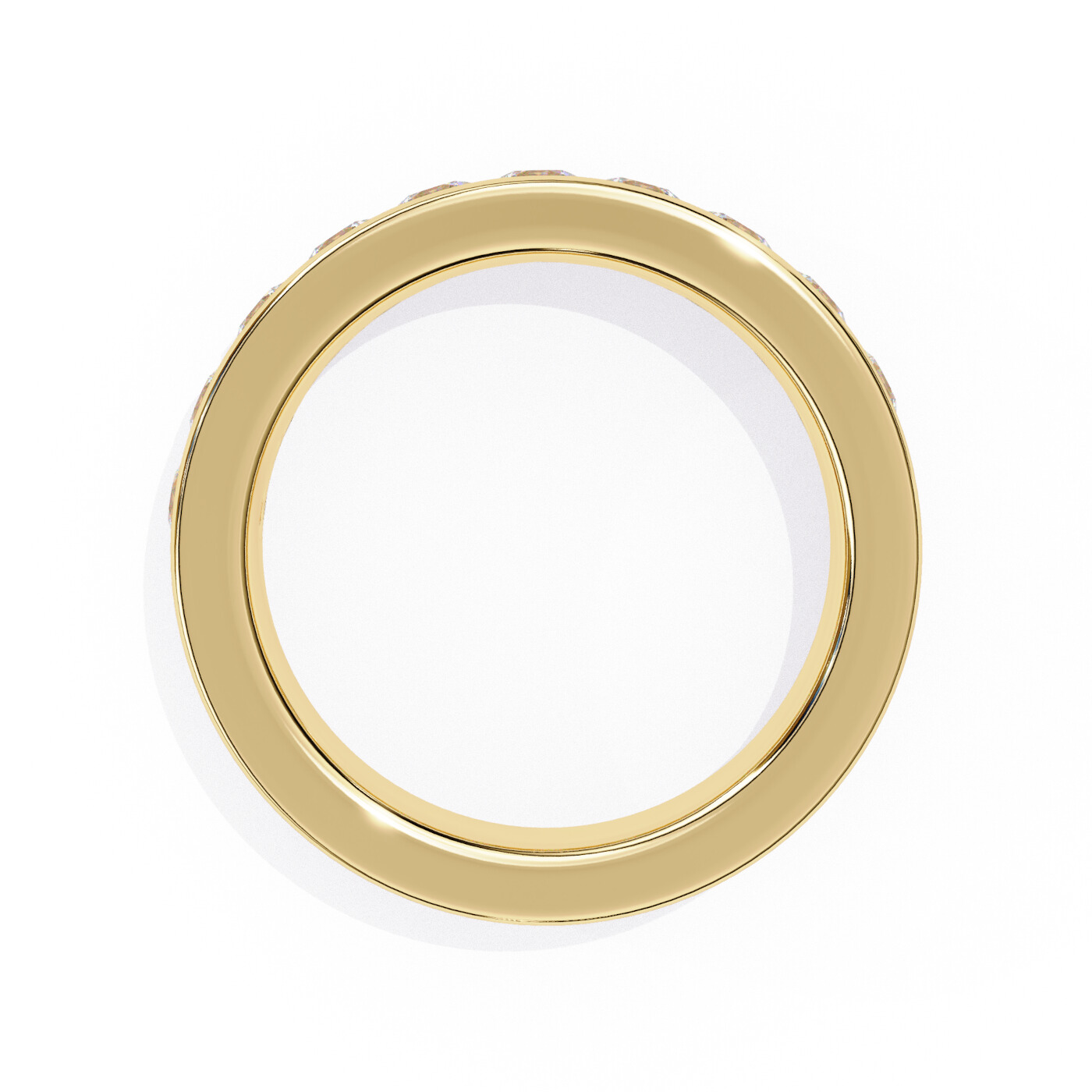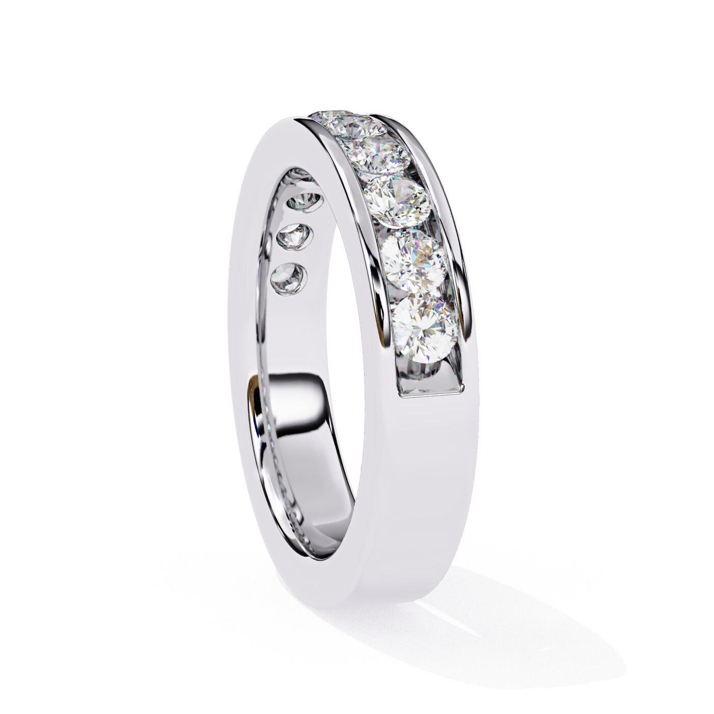 Ring Design: Classic channel-set round diamond band.