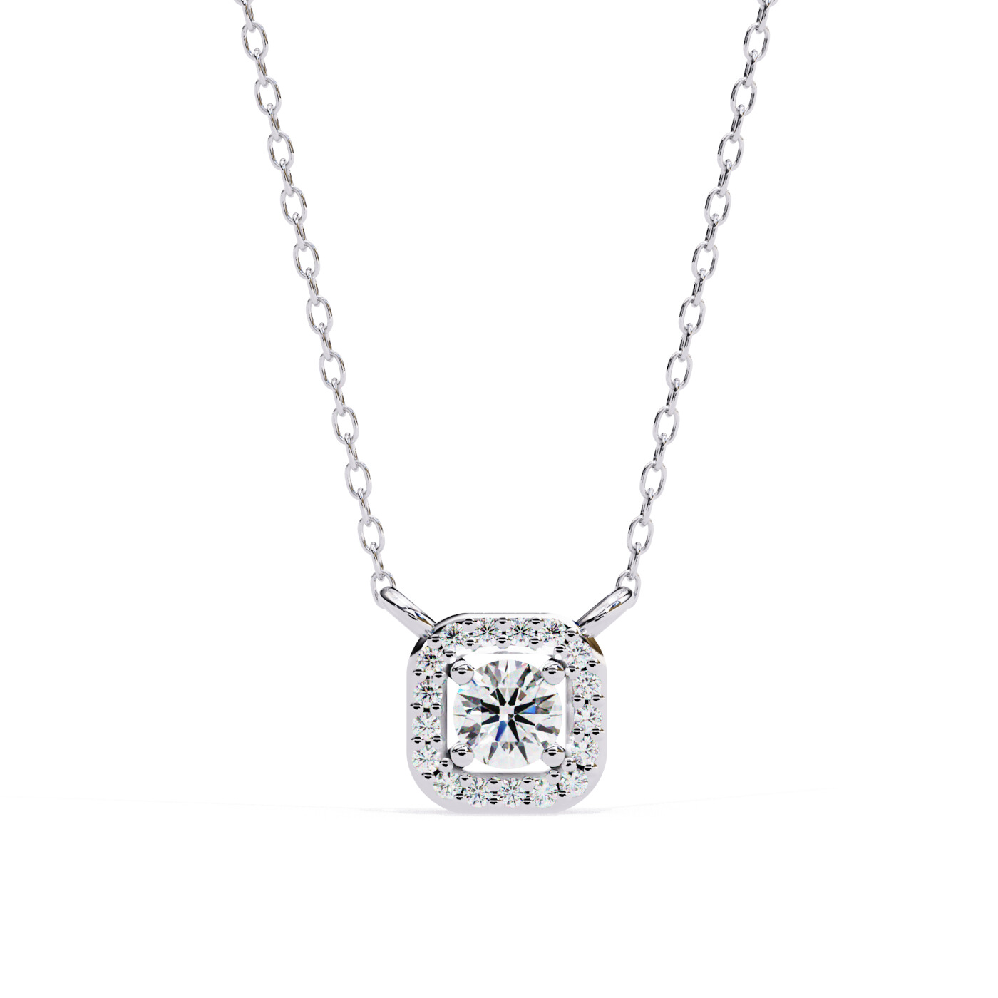 The Cushion Halo Pendant blends classic charm with modern brilliance, featuring a cushion-cut lab-grown diamond at the center framed by a halo of sparkling round stones.