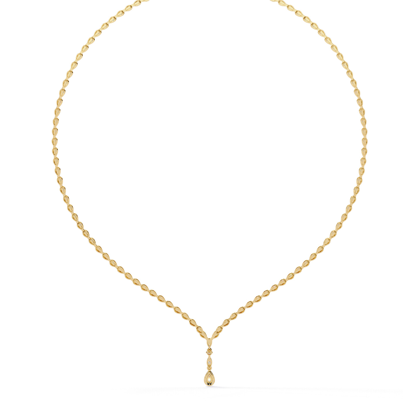 Inspired by soft morning dew, this delicate necklace features a fine row of brilliant lab-grown diamonds set in yellow gold. Perfect for layering or wearing solo, the Dew Drop Necklace offers refined everyday elegance.