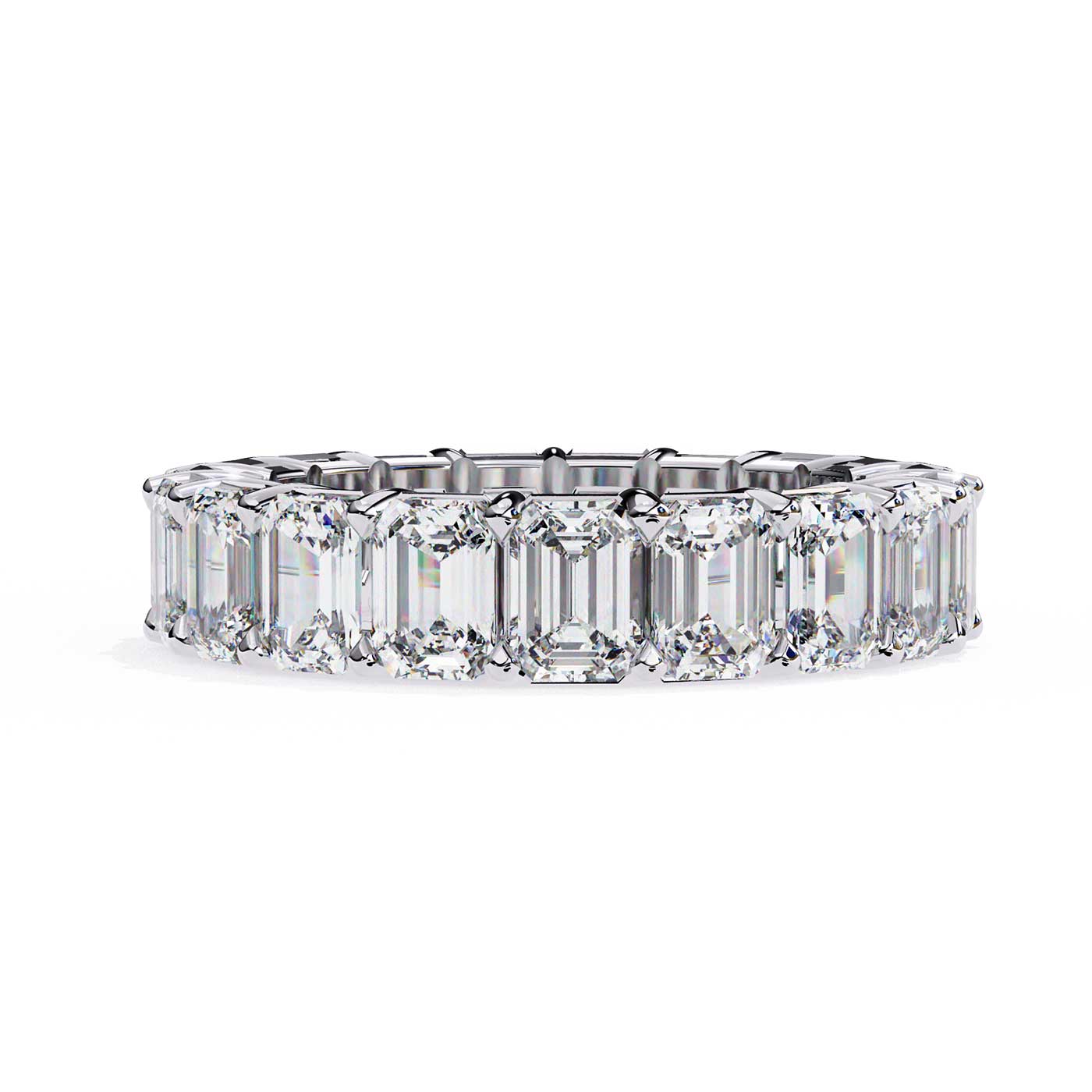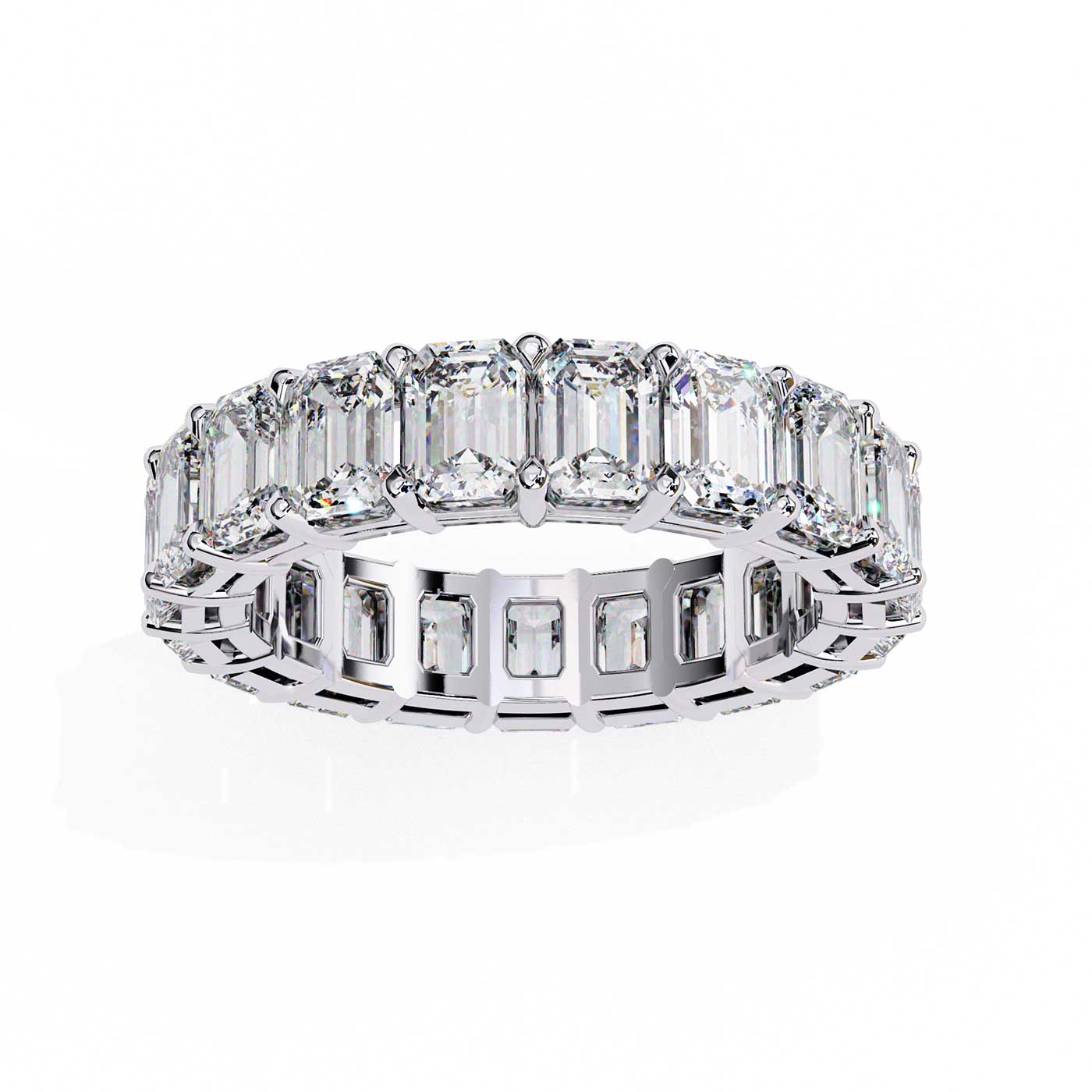 Celebrate everlasting beauty with the Emerald Glow Eternity Ring, crafted in 14K white gold. This timeless full-eternity band is adorned with 19 lab-grown emerald-cut diamonds, each meticulously set in secure prongs to create a seamless circle of brilliance. Perfect for wedding bands, anniversary gifts, or stacking with other rings, it’s a radiant symbol of infinite love and elegance.
