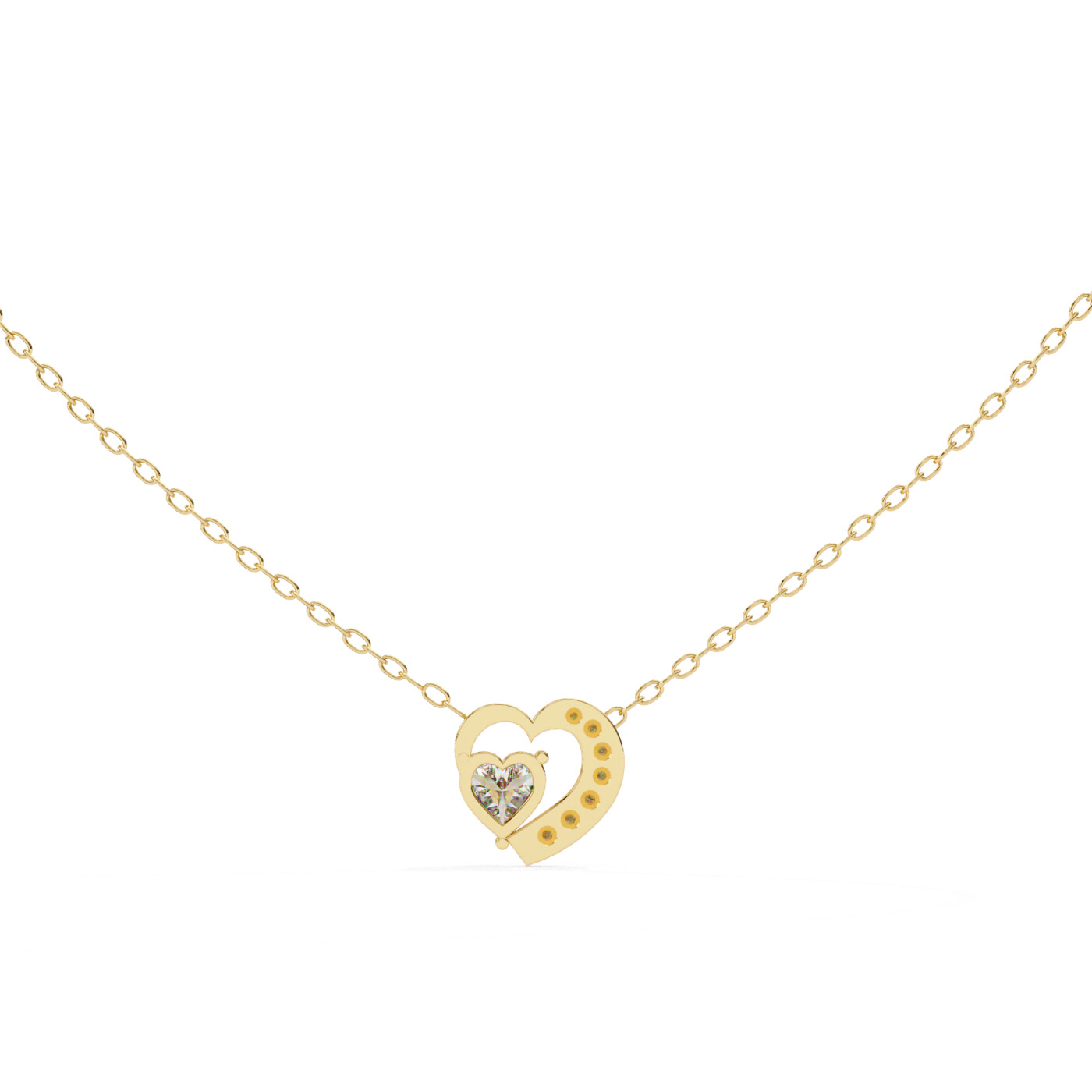 The Heart Embrace Pendant captures romance in a timeless design, featuring a heart-cut diamond surrounded by a side-accented diamond heart frame. Crafted in yellow gold, it’s the perfect gift of love.