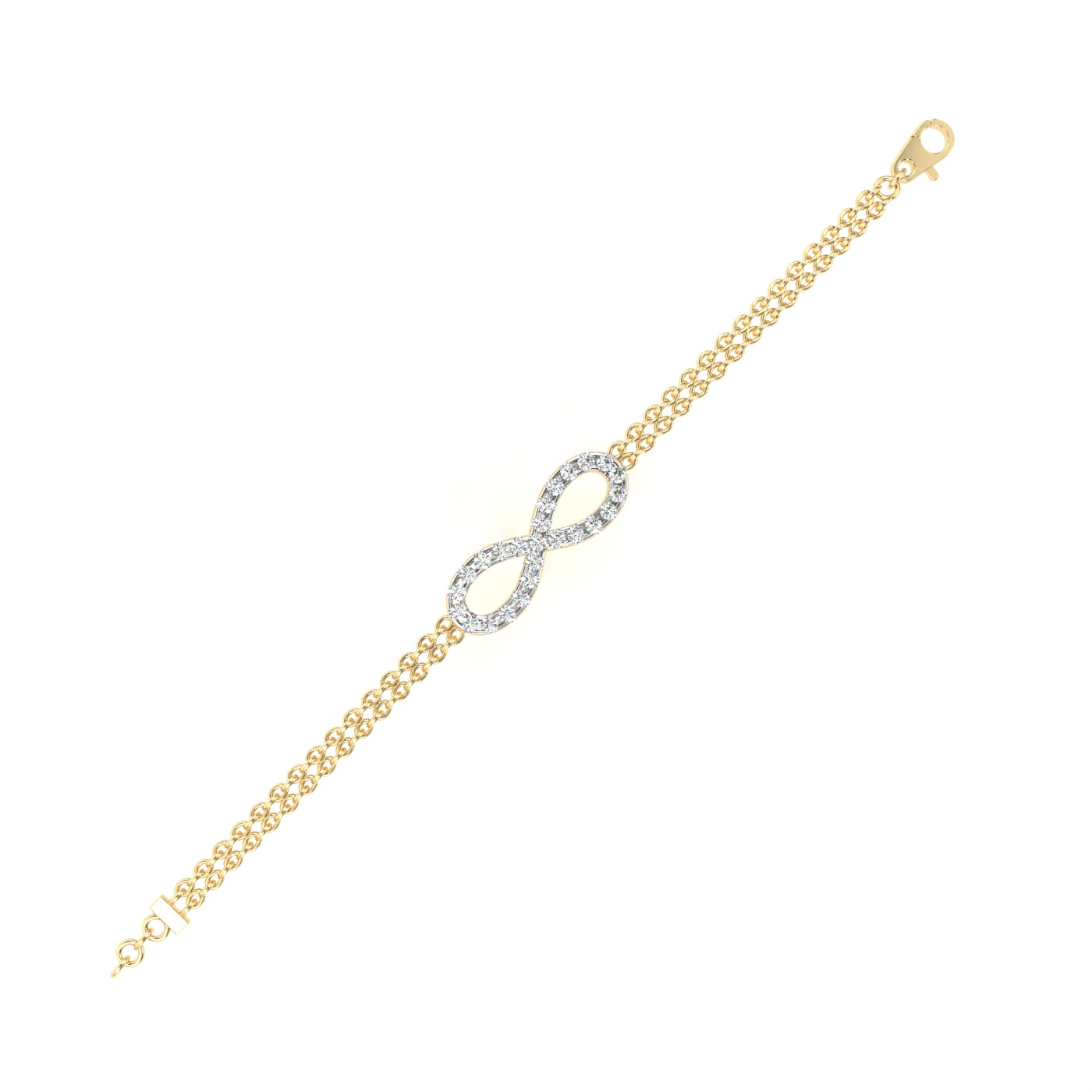 Metal: 14K Yellow Gold, Gold Weight: Approx. 2.26 grams, Diamond Type: Natural, Total Diamond Weight: 0.39 carats, Diamond Shapes: Round, Total Diamonds: 25 stones, 25 Round (1.60 mm) – 0.39 ct total, Bracelet Design: Infinity charm fully set with diamonds