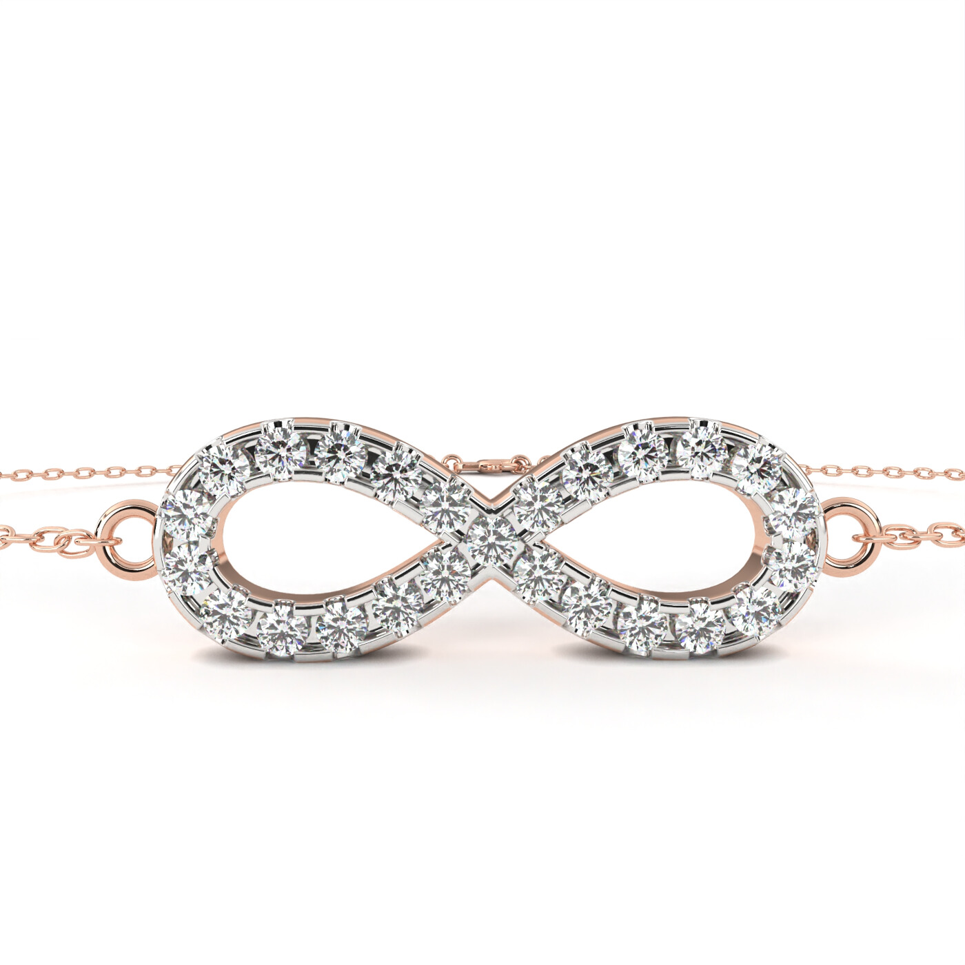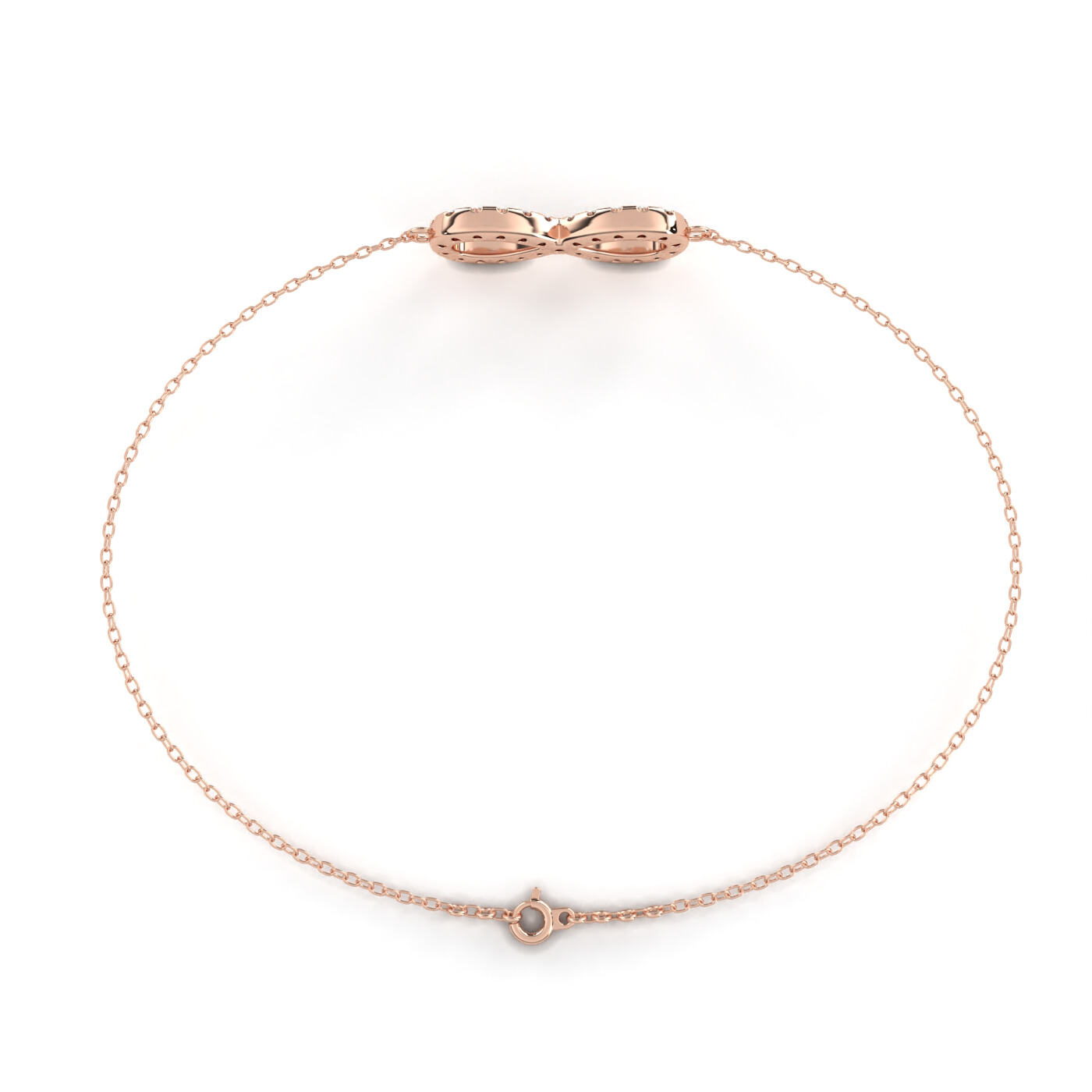 Metal: 14K Yellow Gold, Gold Weight: Approx. 2.26 grams, Diamond Type: Natural, Total Diamond Weight: 0.39 carats, Diamond Shapes: Round, Total Diamonds: 25 stones, 25 Round (1.60 mm) – 0.39 ct total, Bracelet Design: Infinity symbol with diamond accents