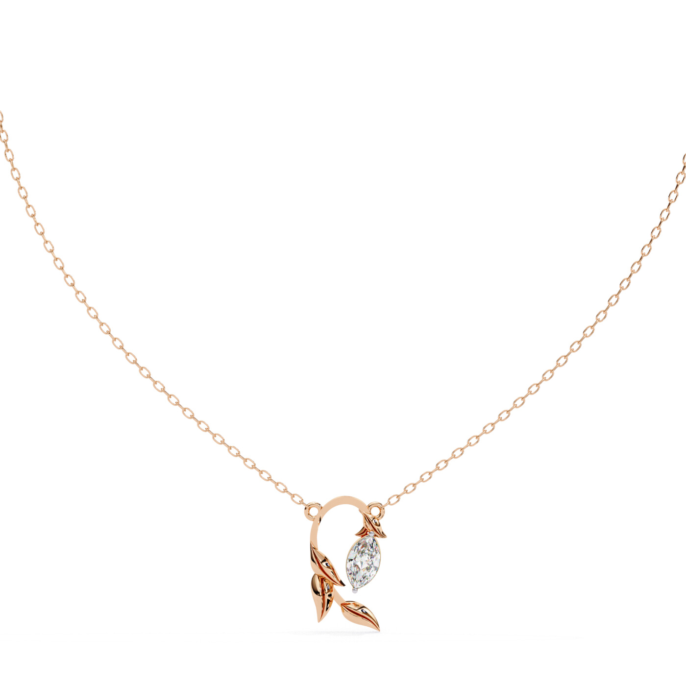 Inspired by nature, the Leaf Marquise Pendant showcases a marquise-cut diamond cradled in a graceful vine of polished yellow gold leaves. This organic yet elegant piece brings timeless beauty to your jewelry collection.