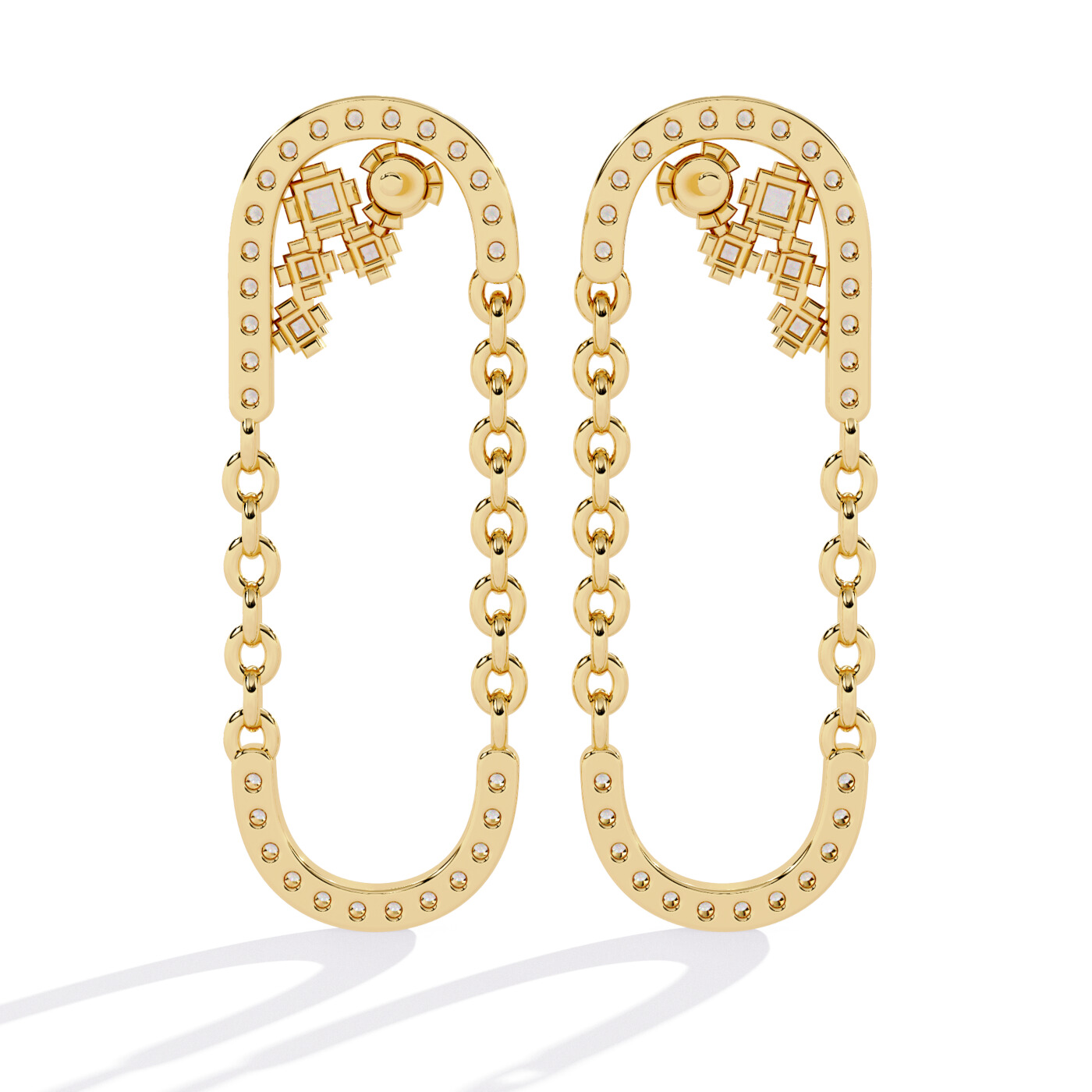 The Link Loop Studs by Nazara Diamonds blend the chic look of chain links with a clean oval silhouette. Featuring princess and round lab-grown diamonds arranged along the outer loop, these earrings offer bold geometry with refined sparkle.