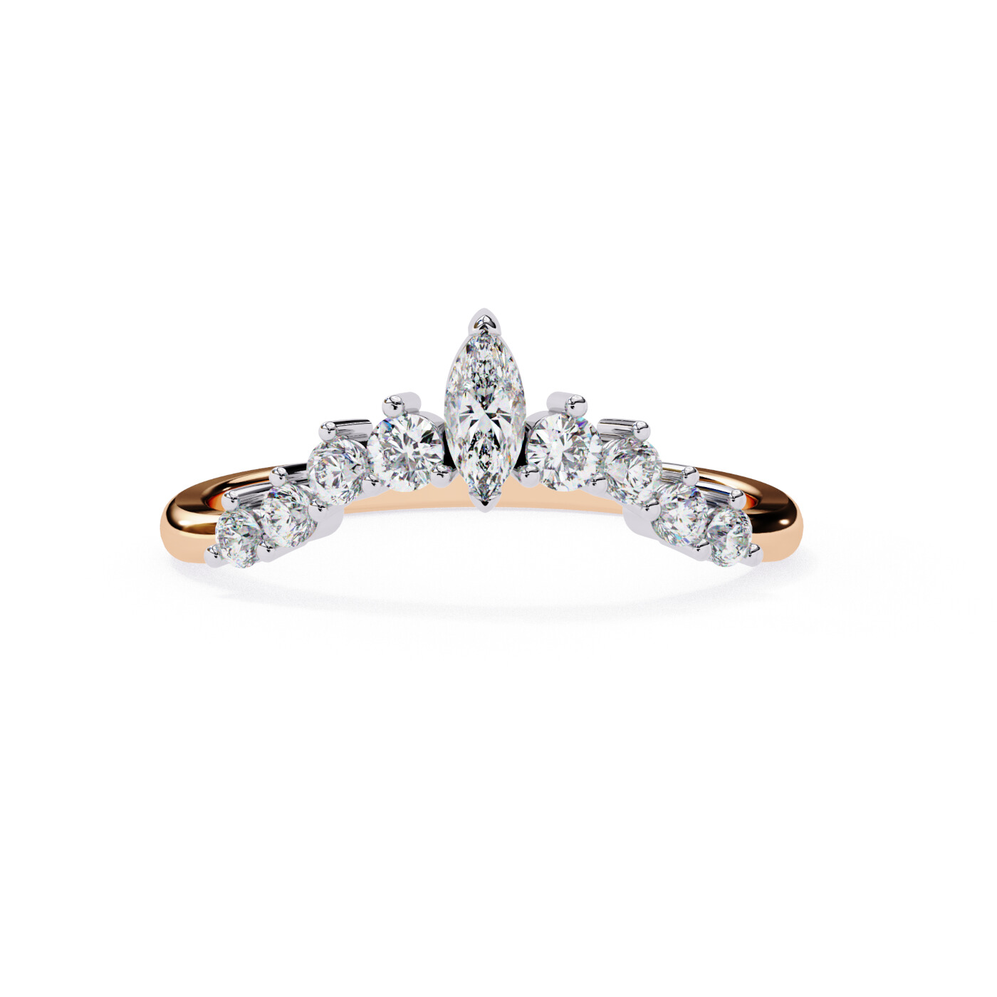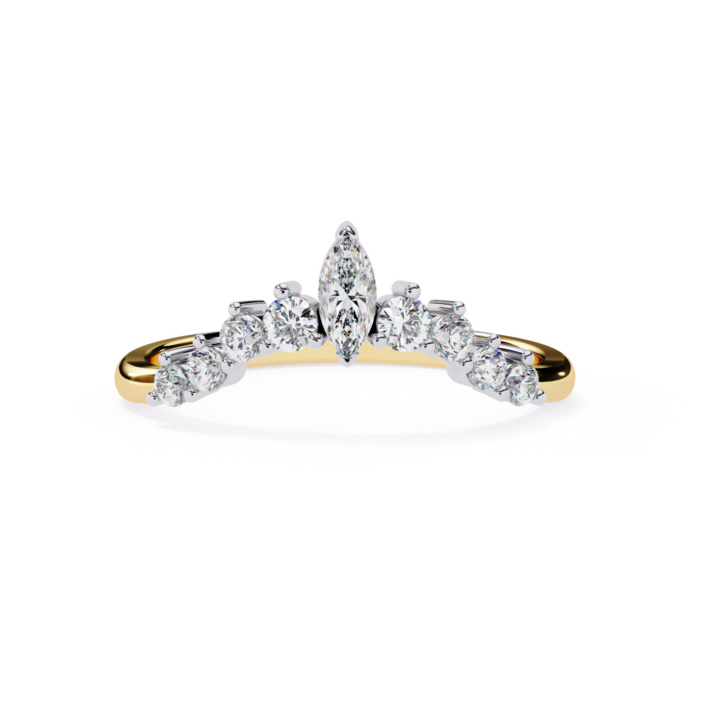 A graceful marquise-cut centerpiece surrounded by sparkling round lab-grown diamonds, set on a sleek 14K yellow gold band. Perfect for adding a touch of floral elegance to your look.