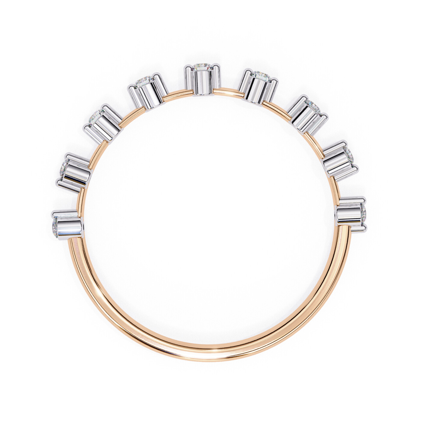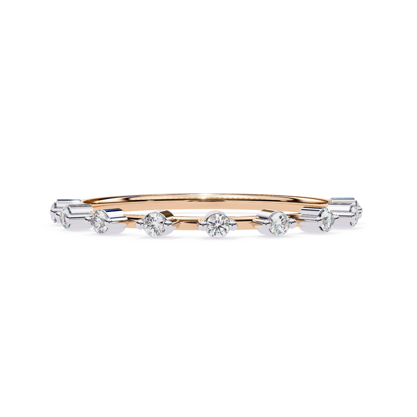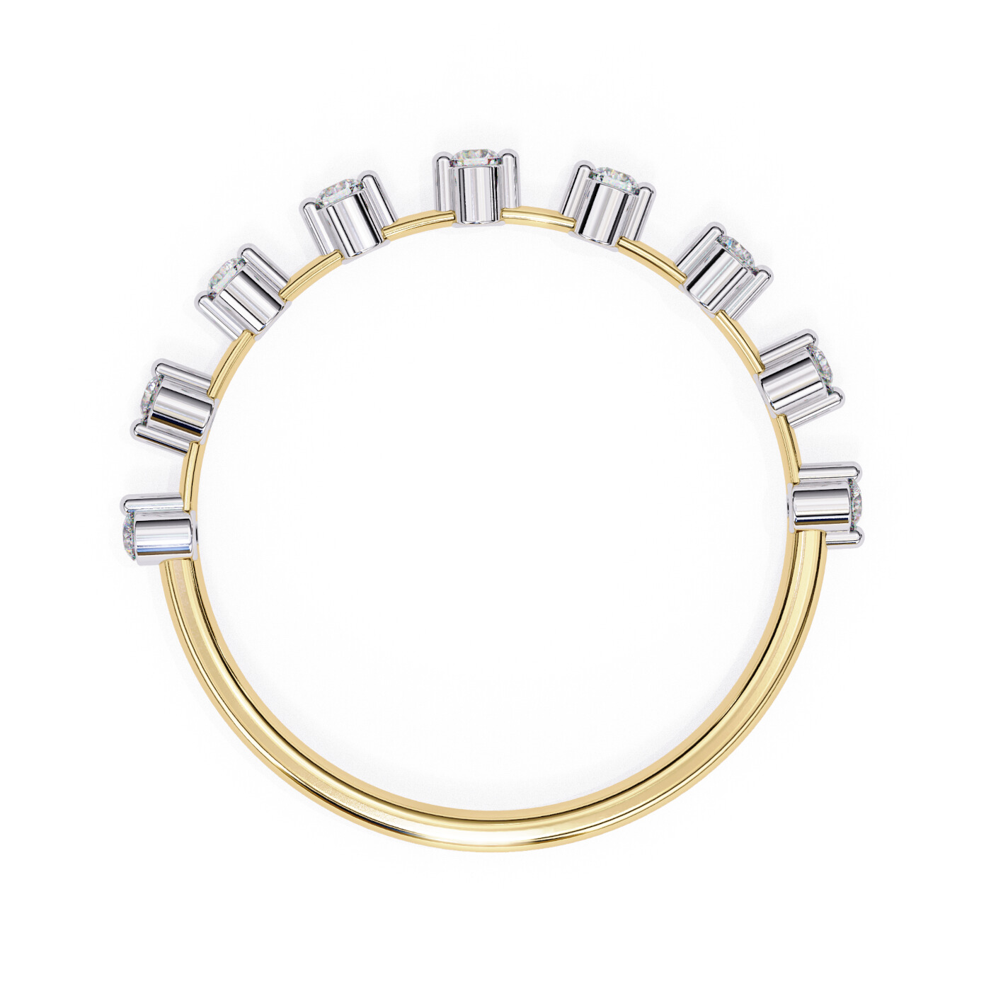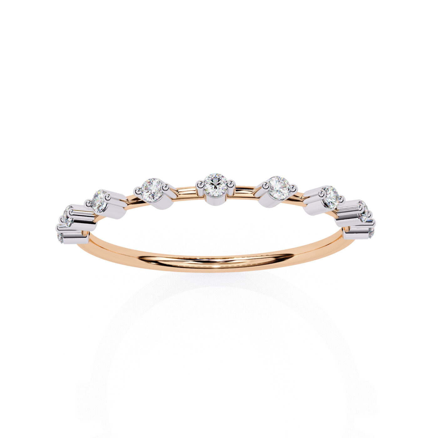 Metal: 14K White Gold, Gold Weight: Approx. 0.72 grams, Diamond Type: Lab-Grown Diamonds, Total Diamond Weight: 0.11 carats, Diamond Shapes: Round, Total Diamonds: 9 stones (1.50 × 1.50 mm) – 0.11 ct total, Ring Style: Minimal prong-set diamond band.