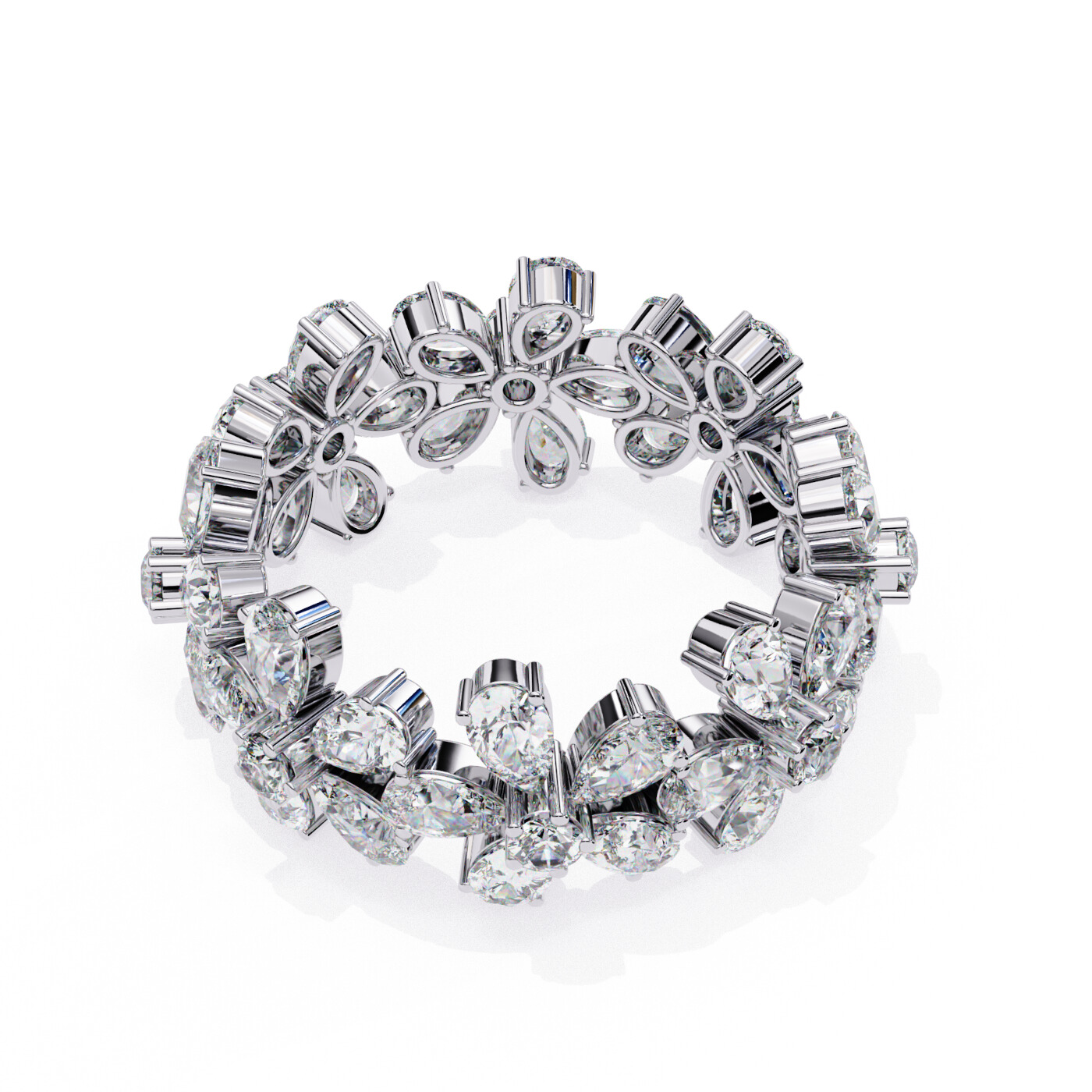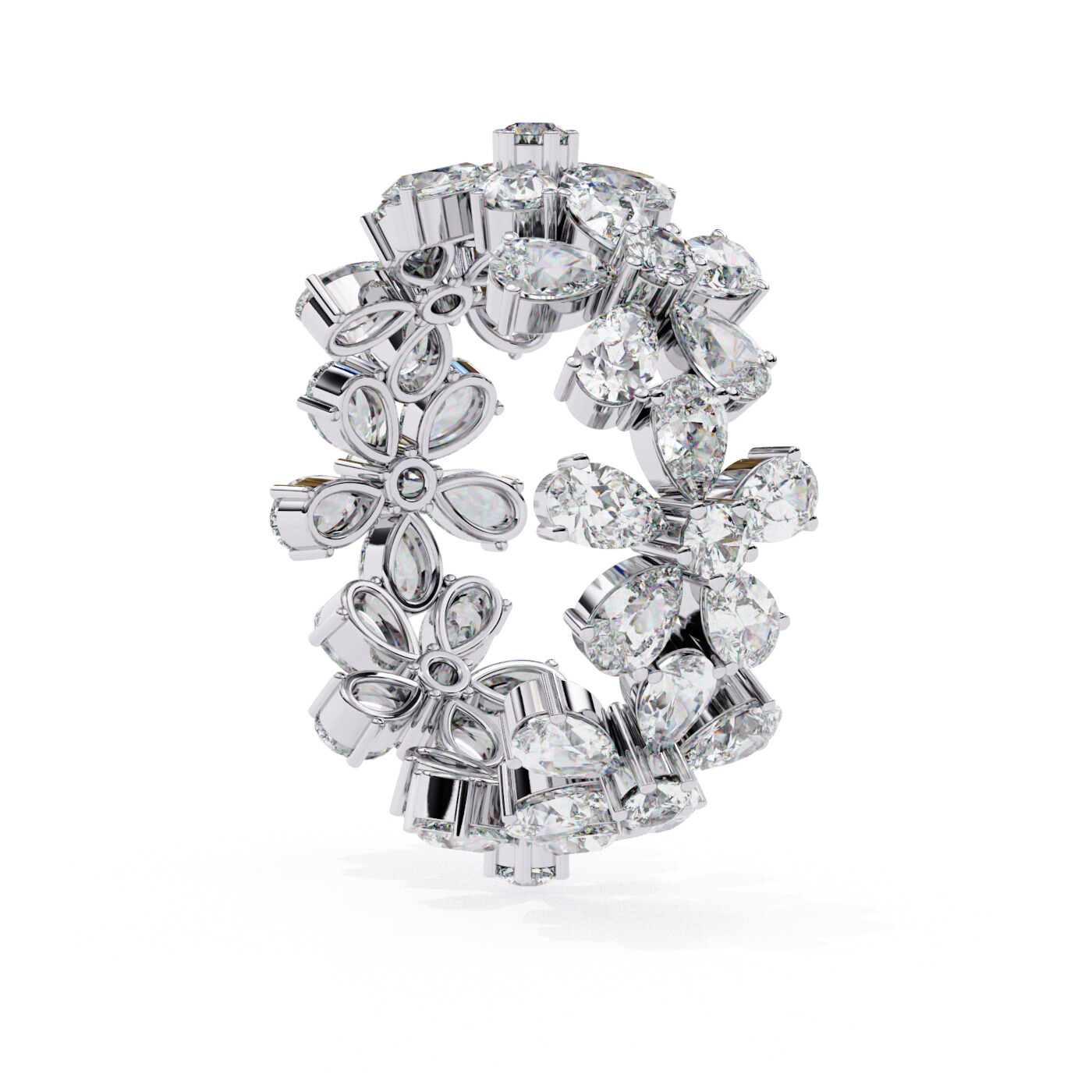 A floral-inspired band showcasing an intricate arrangement of pear and round lab-grown diamonds, forming a stunning continuous blossom design. Perfect for those who love bold yet feminine jewelry styles.