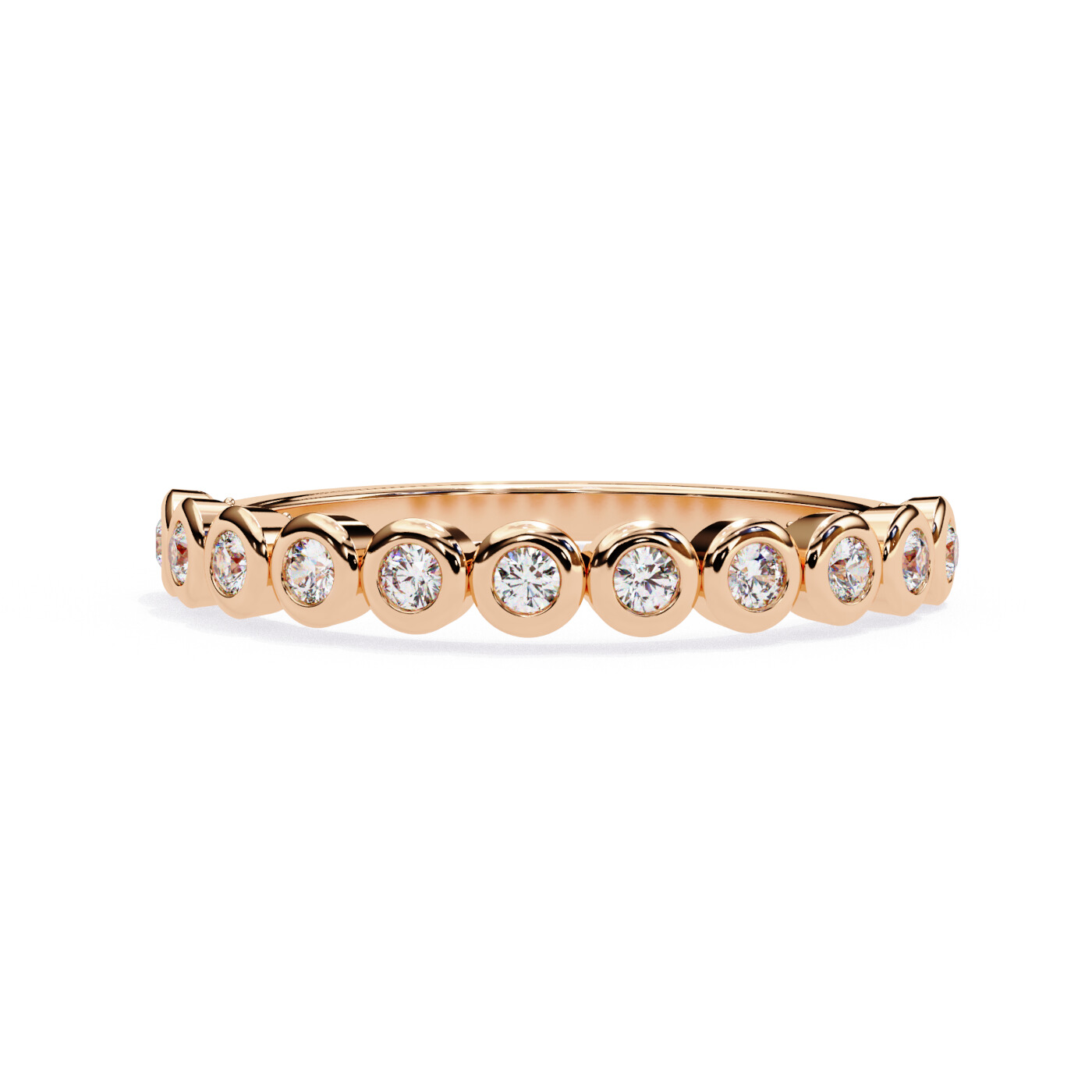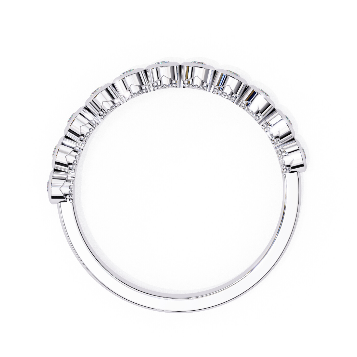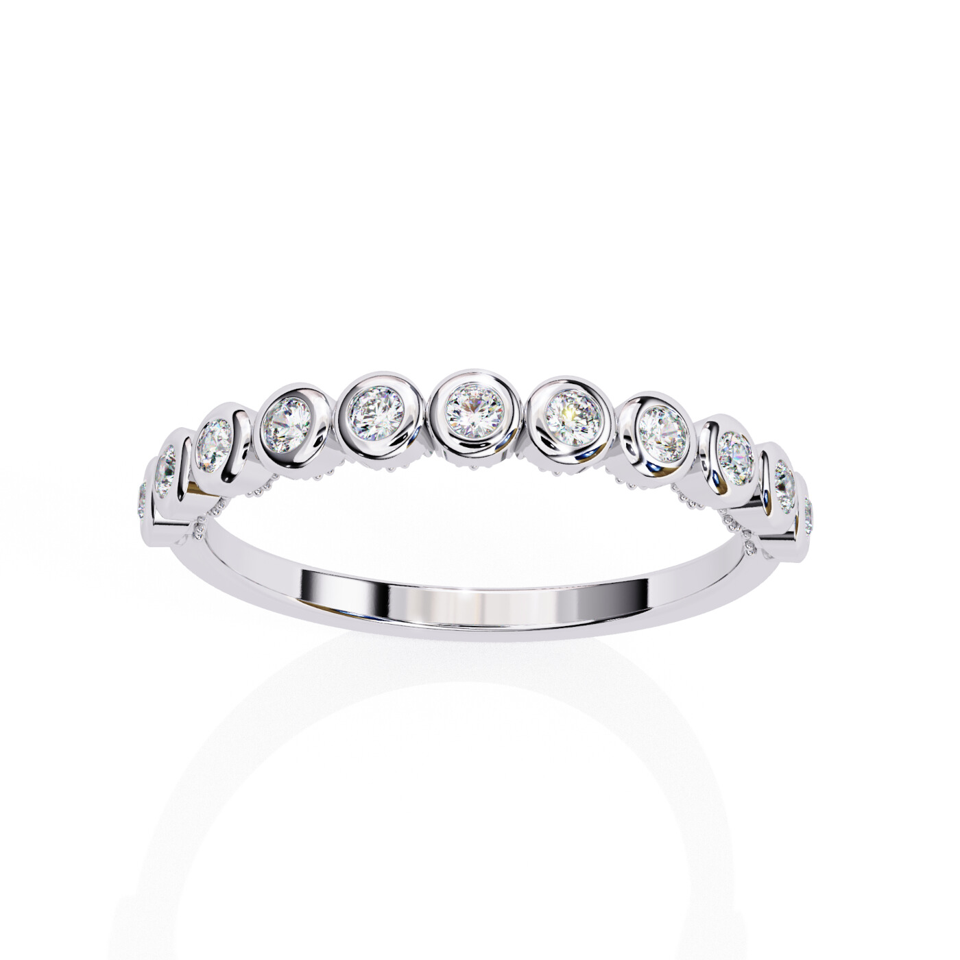 Metal: 14K White Gold, Gold Weight: Approx. 2.22 grams, Diamond Type: Lab-Grown Diamonds, Total Diamond Weight: 0.17 carats, Diamond Shapes: Round, Total Diamonds: 11 stones (1.60 × 1.60 mm) – 0.17 ct total, Ring Style: Bezel-set diamond eternity band.
