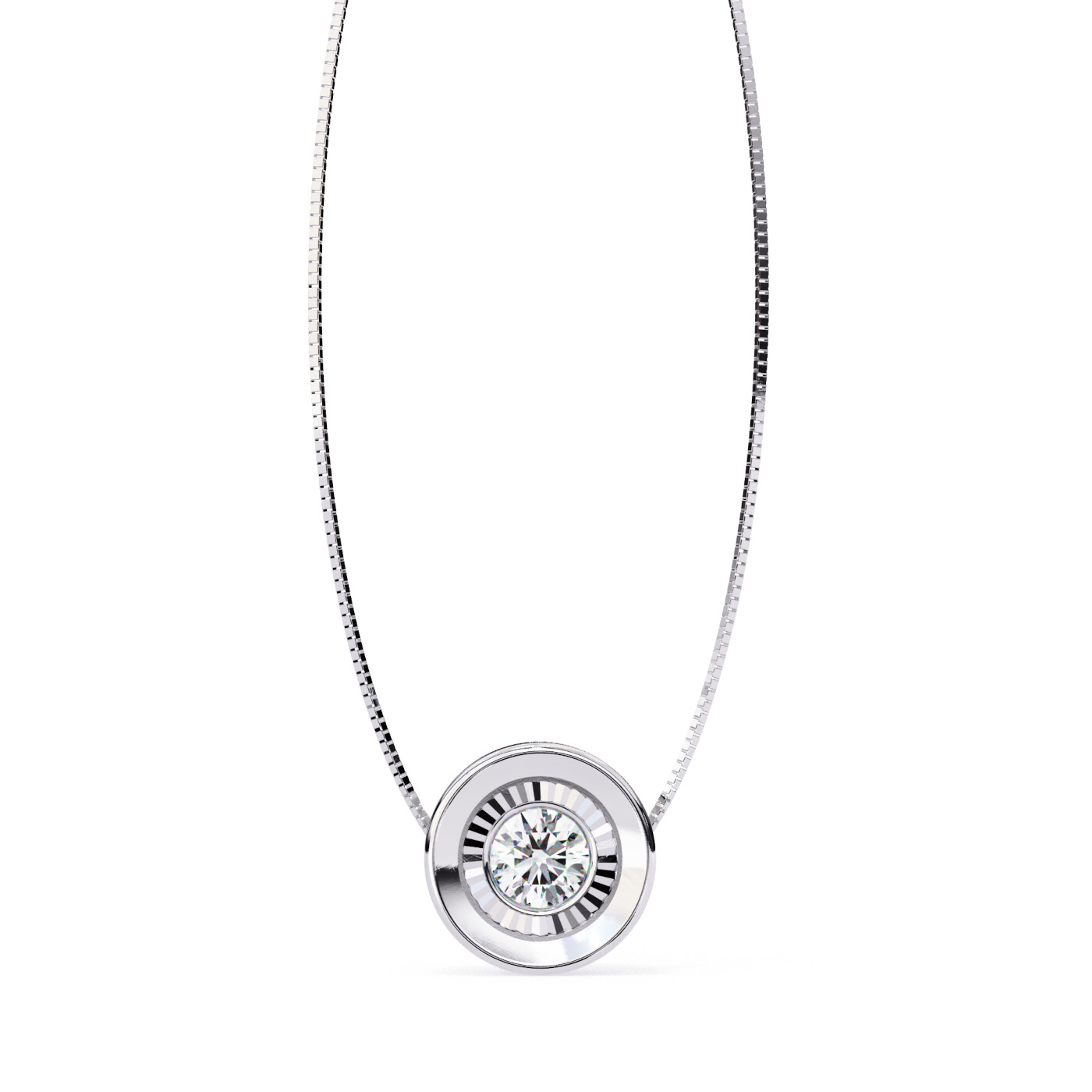 A minimalistic round lab-grown diamond pendant, encased in a petite bezel setting for a subtle yet radiant everyday look.