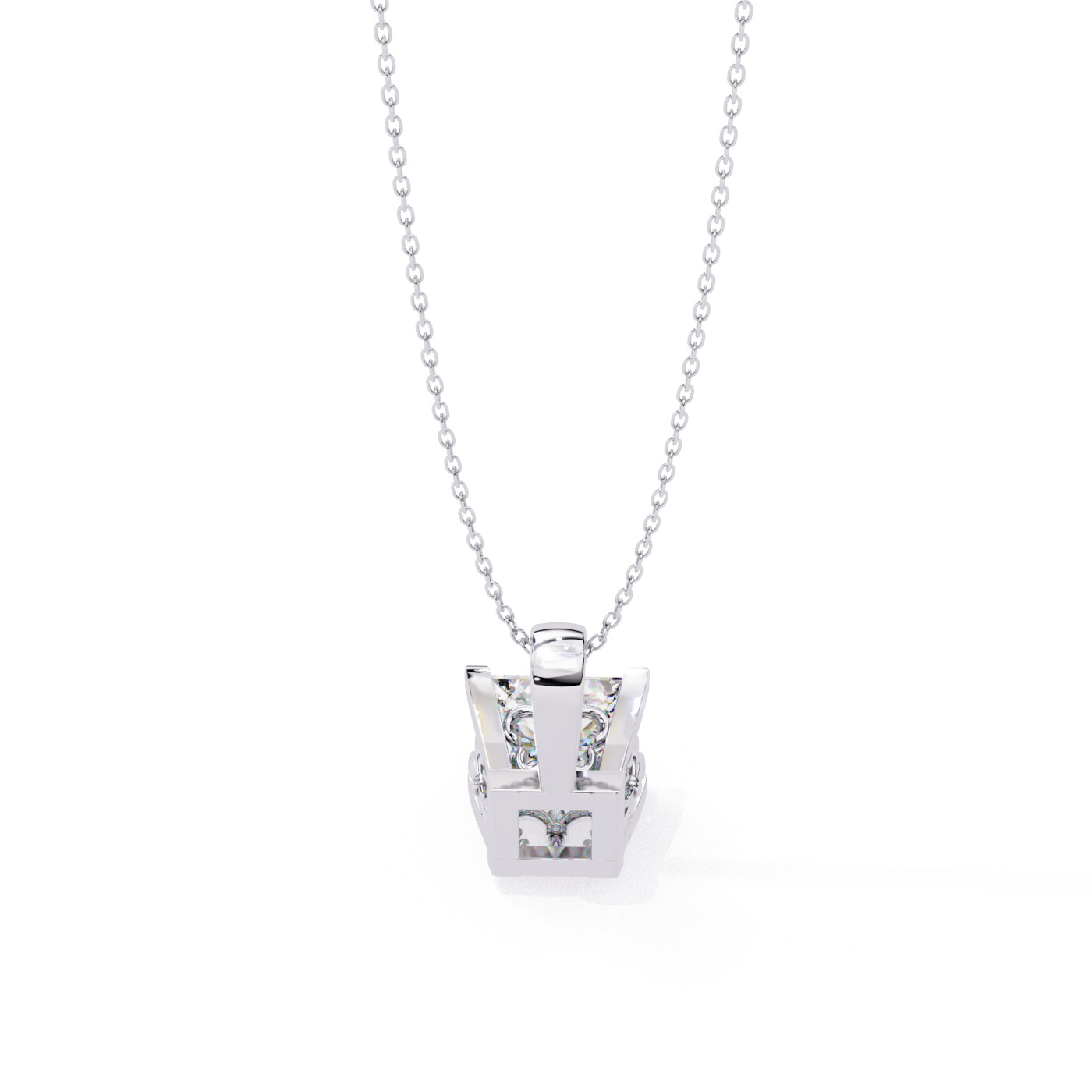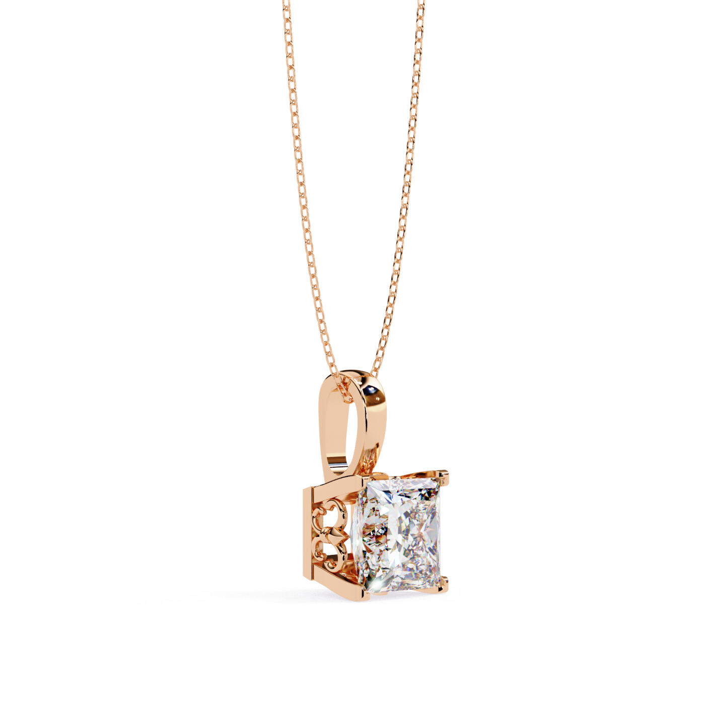 A radiant pendant crafted to highlight the clean symmetry of the princess-cut diamond. The 5.45 × 5.45 mm lab-grown stone sits in a secure four-prong setting that emphasizes its sharp corners and geometric brilliance. Simple yet elegant, this pendant makes a statement of refined luxury for everyday wear or special occasions.