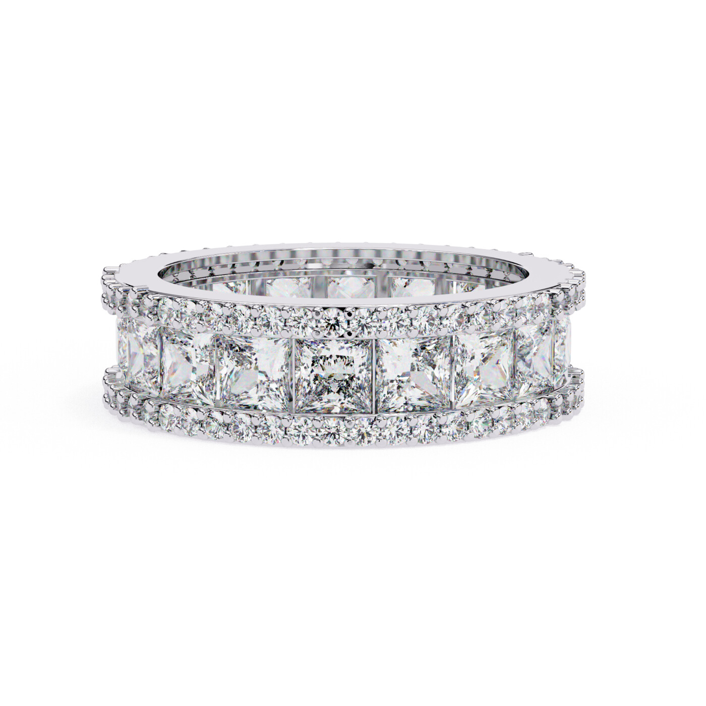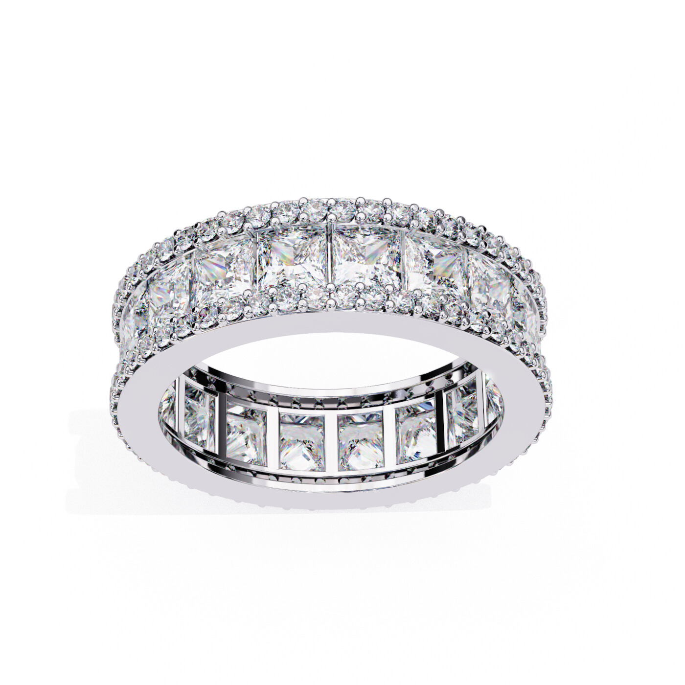 A sophisticated eternity band featuring alternating rows of princess-cut and round lab-grown diamonds, set seamlessly to create a refined geometric aesthetic.