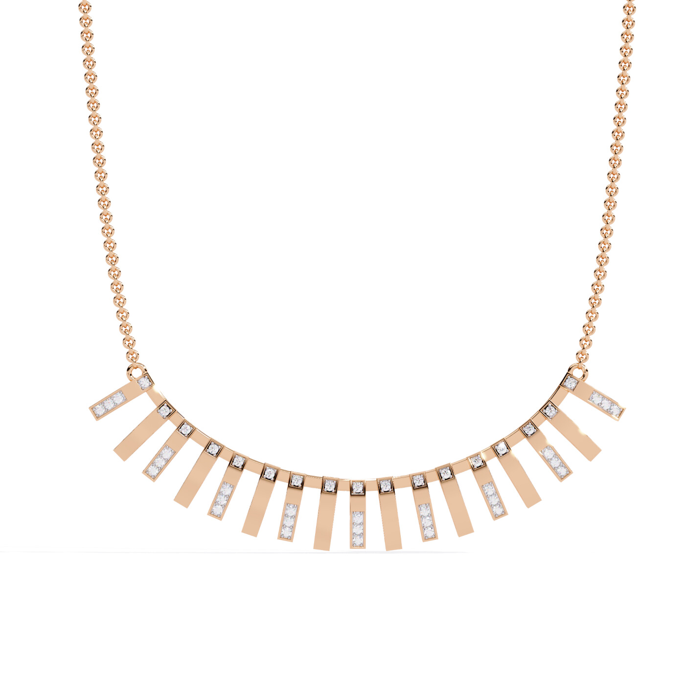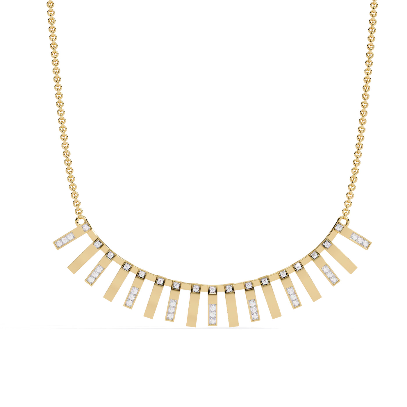 Bold and brilliant, the Radiant Bar Necklace brings structure and sparkle together in one frame. Featuring rectangular vertical bars in yellow gold, each set with lab-grown diamonds, this necklace is both contemporary and luxurious. A perfect pick for statement layering or solo wear.
