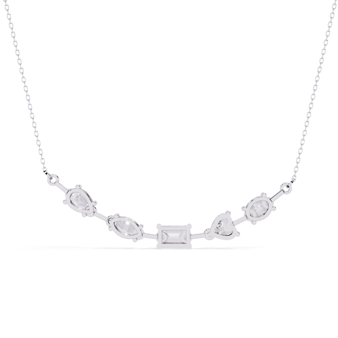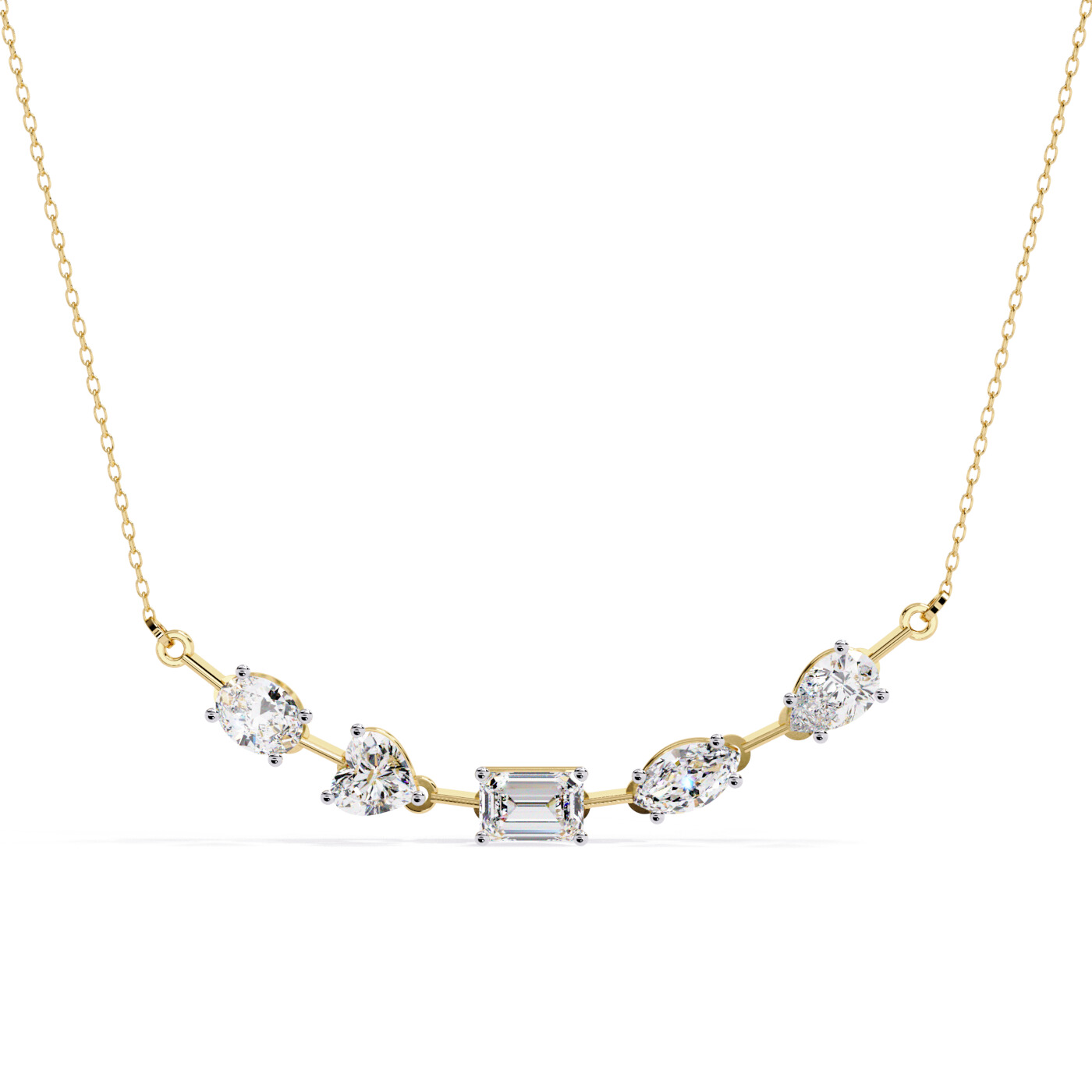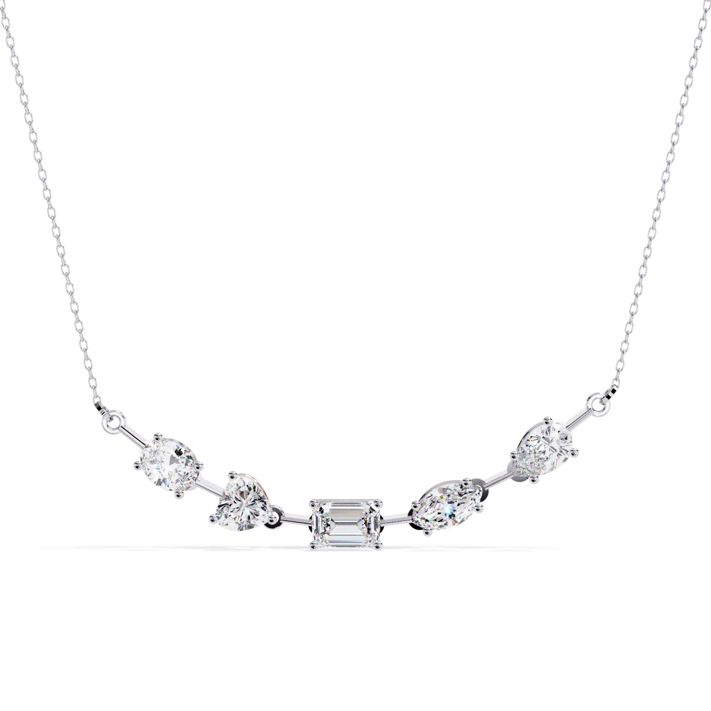 A luxurious display of craftsmanship, this necklace fuses five exquisite diamond cuts — heart, oval, pear, marquise, and emerald — in perfect harmony. A radiant piece that speaks volumes