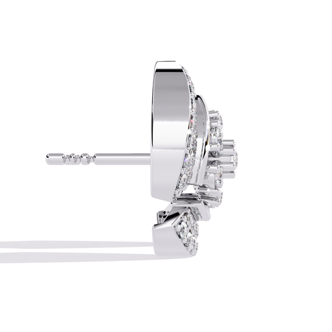 Sculptural and captivating, the Radiant Fan Studs from Nazara Diamonds feature a bold half-fan silhouette adorned with rows of precision-set lab-grown diamonds. The symmetrical composition and intricate inner detailing bring a sense of structured elegance to the design. Set in rich yellow gold, these earrings are perfect for evening occasions or power dressing with a sparkle.