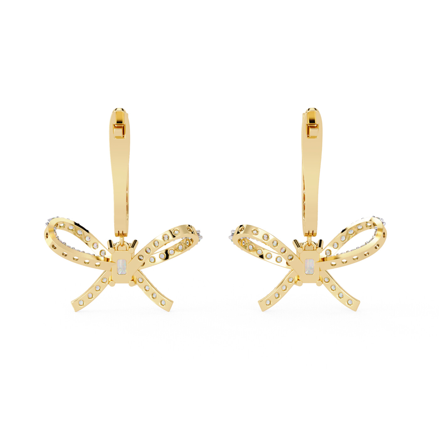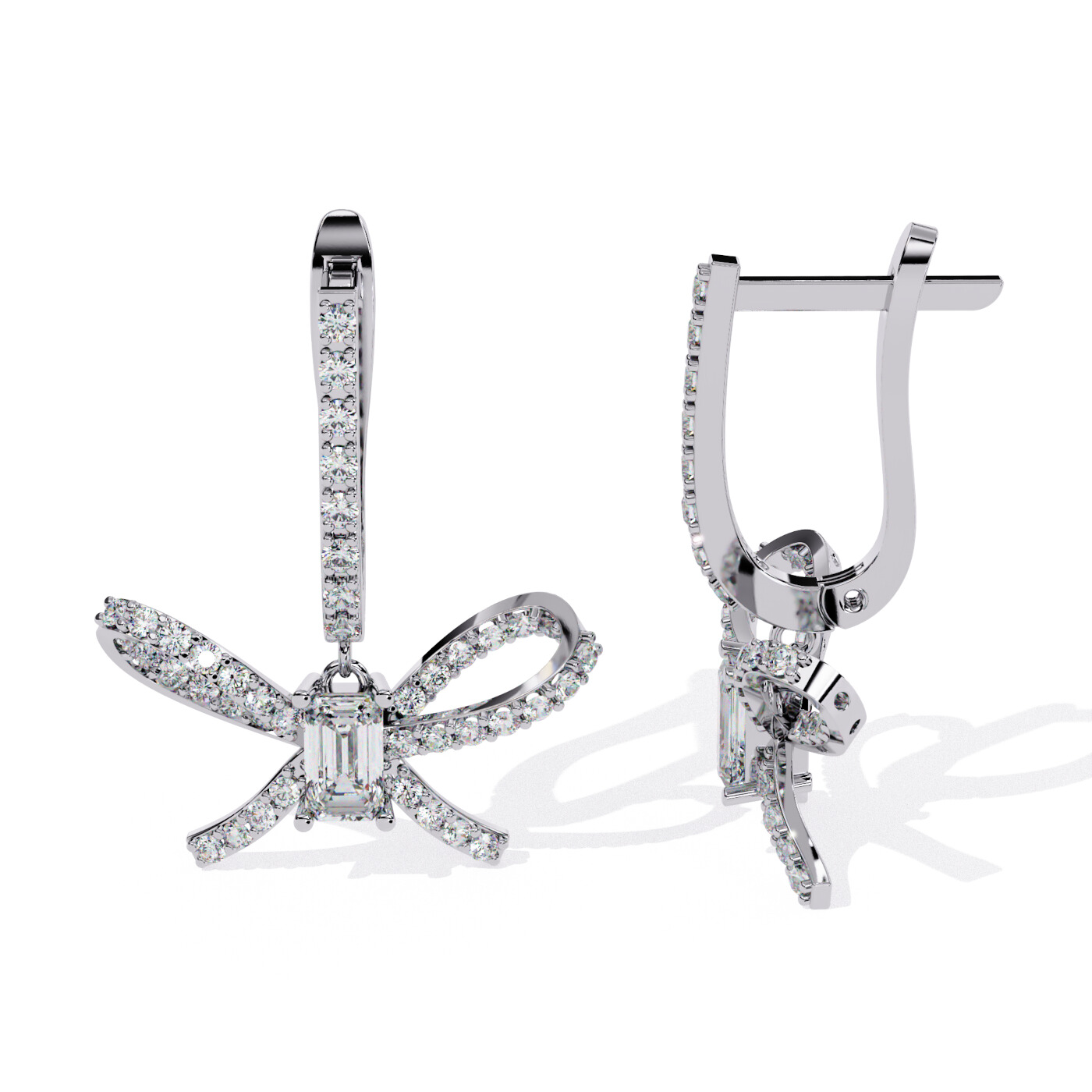 Charming and feminine, the Ribbon Bow Studs by Nazara Diamonds feature a stylized bow crafted in diamonds with an emerald-cut centerpiece. With its graceful silhouette and sparkling finish, this design adds a playful luxury to any look.