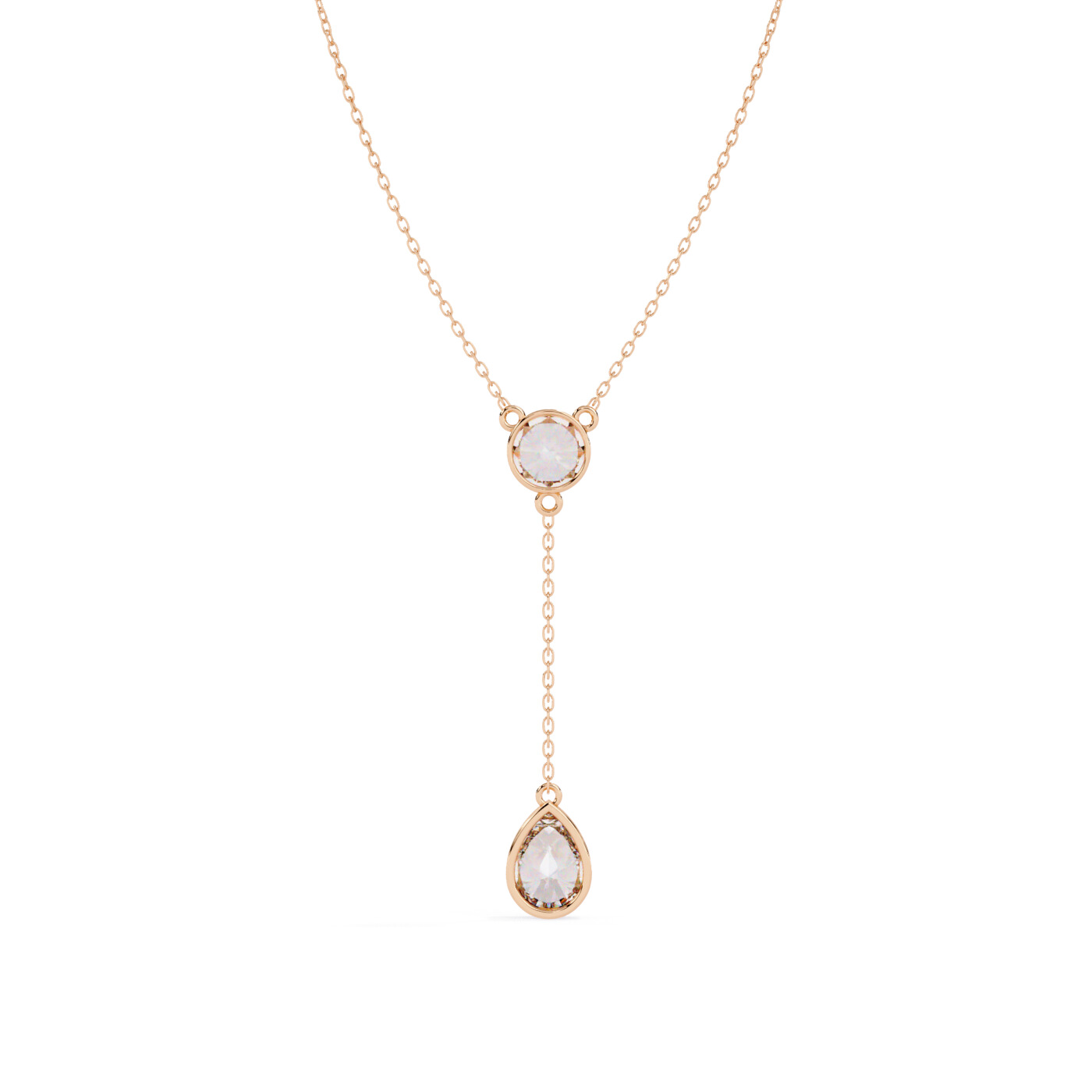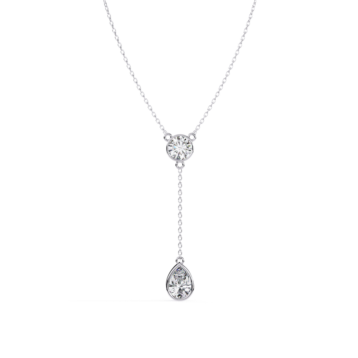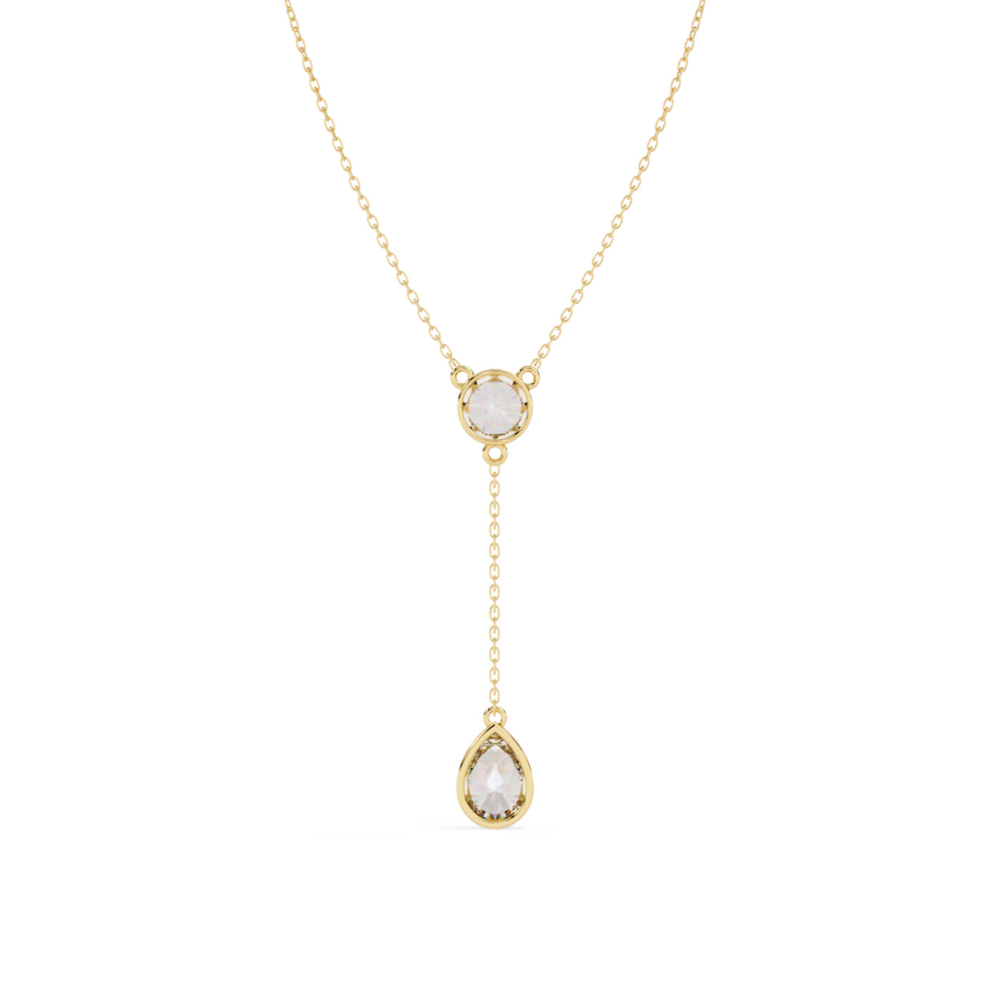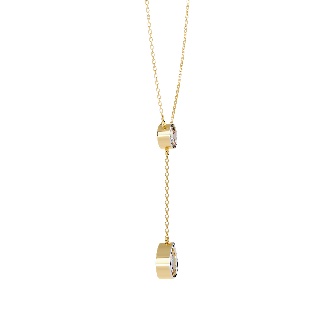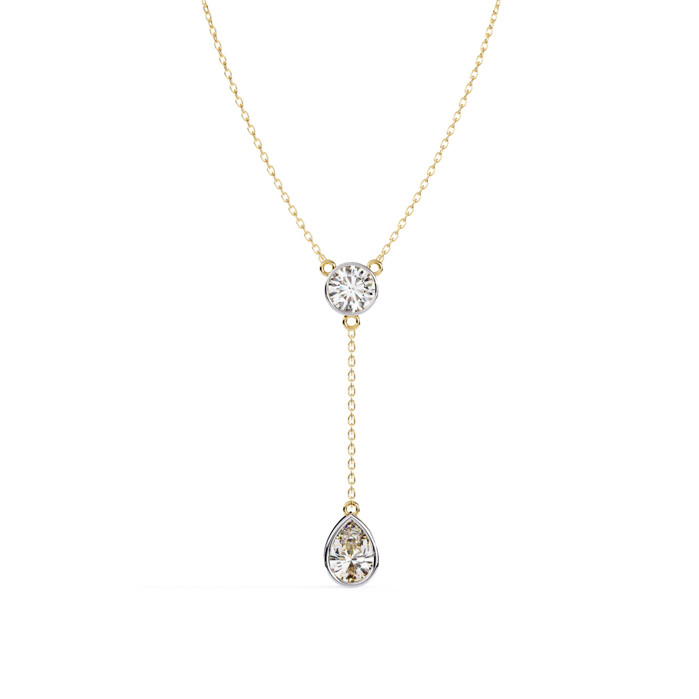 A sleek pendant featuring two dazzling lab-grown diamond drops, linked with a delicate gold chain loop for a refined modern look.