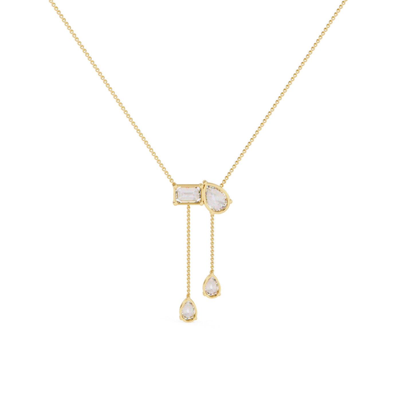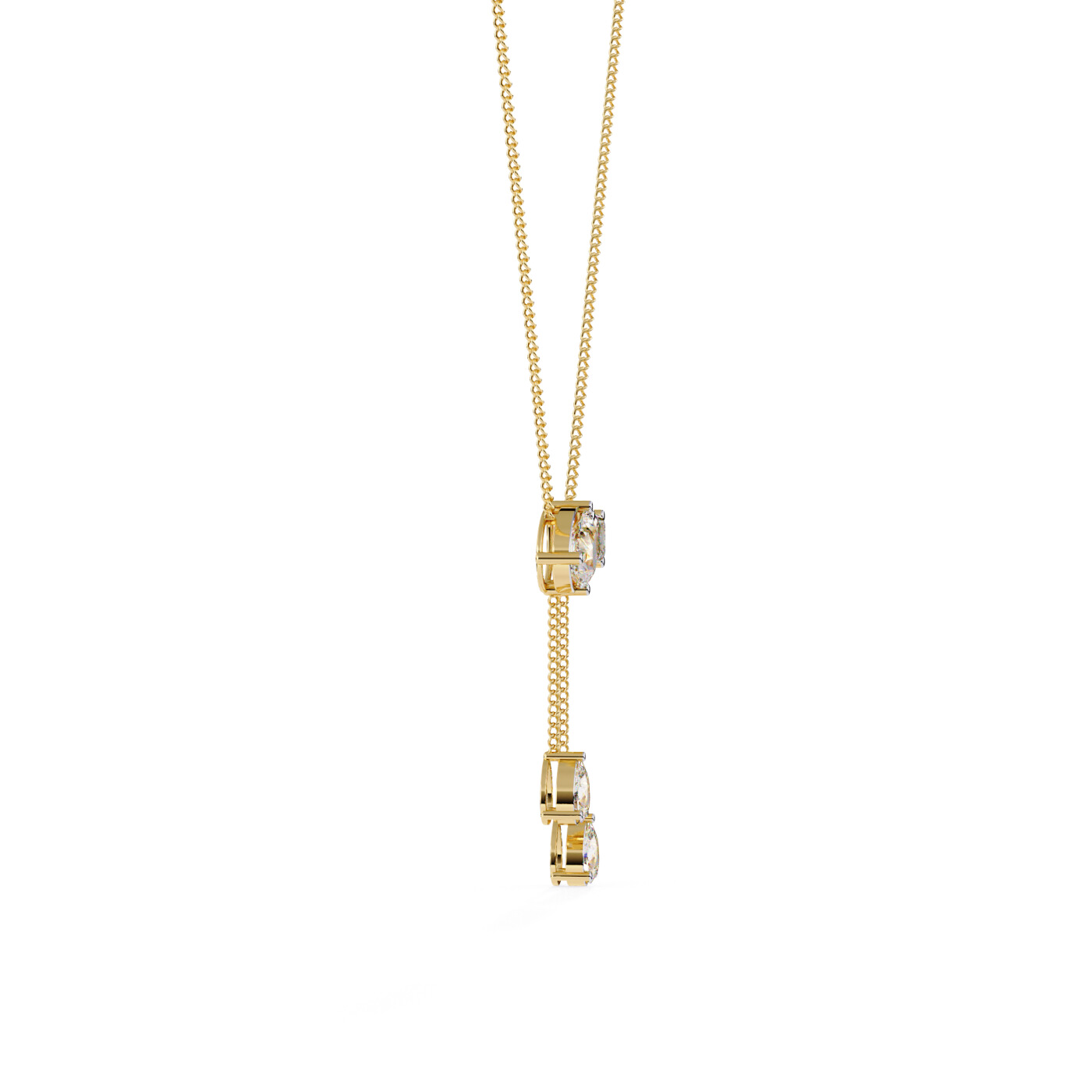 Featuring two parallel drops of lab-grown diamonds suspended from a central setting, this pendant blends symmetry with sparkle.