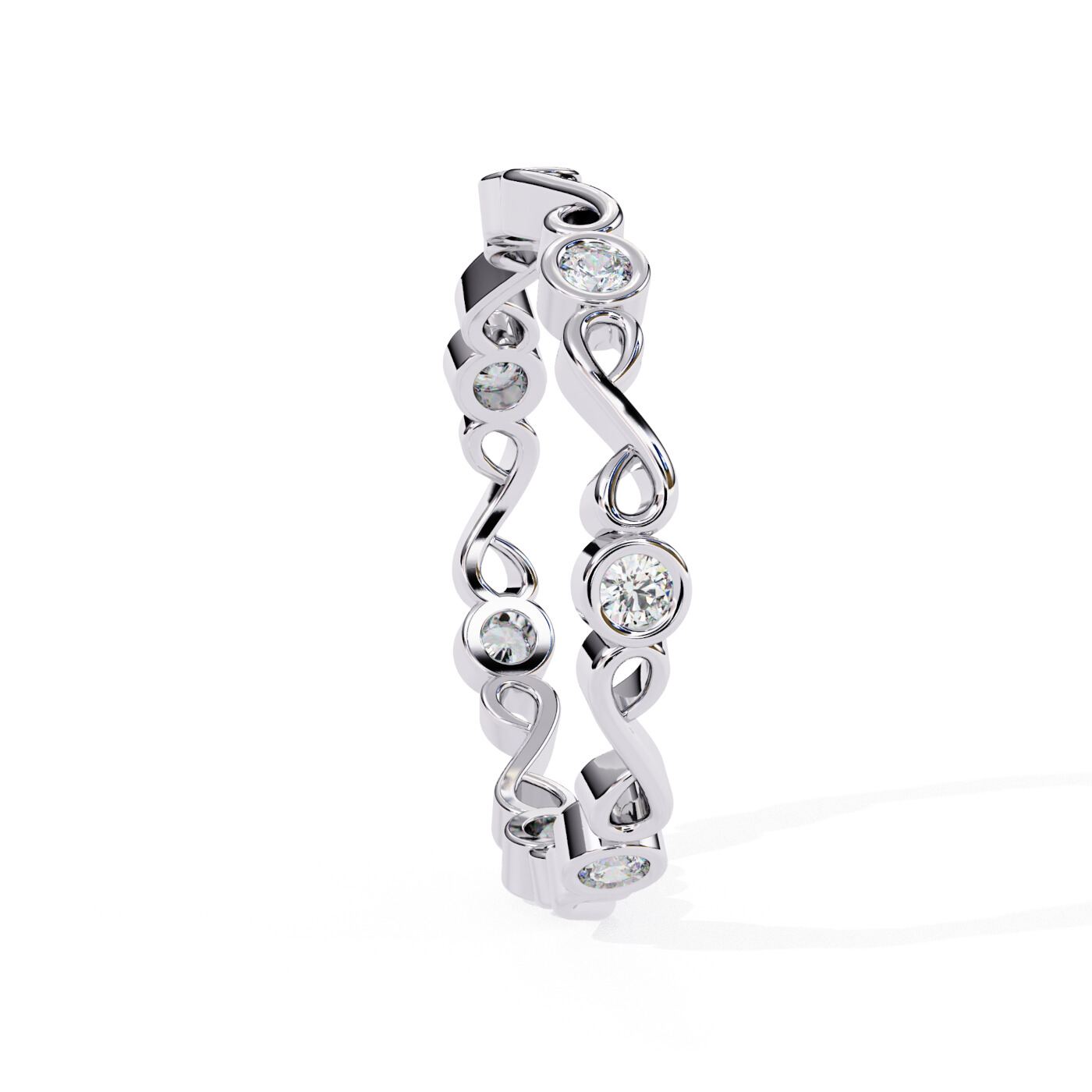 A delicate infinity-inspired band with alternating bezel-set round lab-grown diamonds, symbolizing eternal love and elegance. The openwork twist design adds a modern and airy feel.