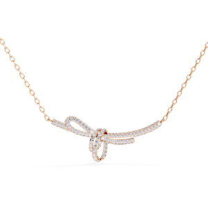 The Diamond Knot necklace by Nazara Diamonds is a symbol of strength and elegance. Designed with a bold knotted centerpiece encrusted with lab-grown round diamonds, this sculptural piece is both eye-catching and graceful. Set in polished white gold, it’s perfect for making a statement at any occasion.